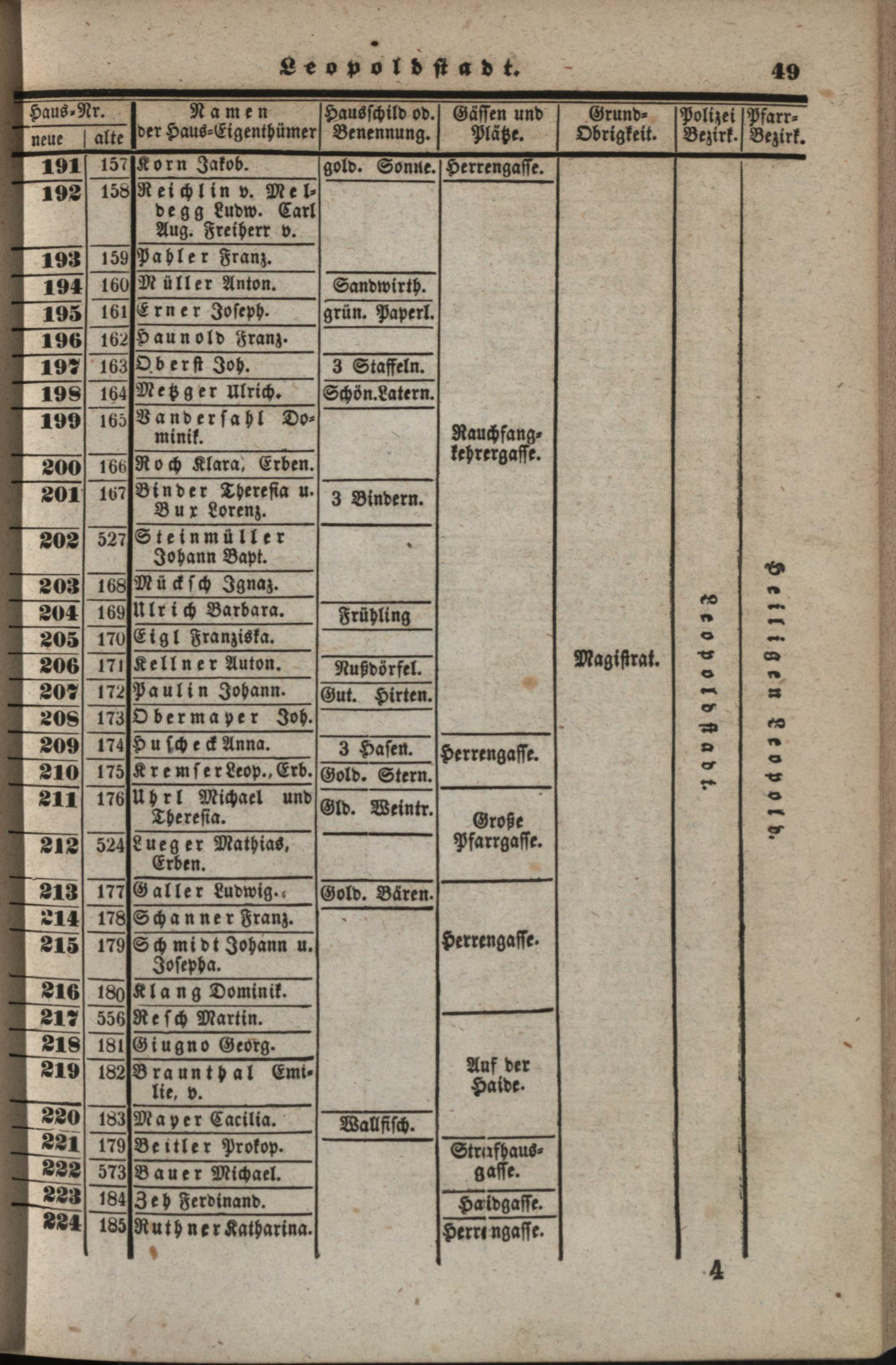 Neues, verbessertes und vermehrtes Häuser-Schema der k. k. Haupt- und Residenzstadt Wien : mit ihren 34 Vorstädten, allen Neubauten und den angränzenden nahen Ortschaften, welche noch zu den Polizei-Bezirken Wiens gehören, als: Brigittenau, Währing, Hernals, Neulerchenfeld, Fünf- und Sechshaus, Rustendorf, Braunhirschen, Reindorf, dann Gaudenzdorf ; mit genauer Angabe der Haus-Nummern...