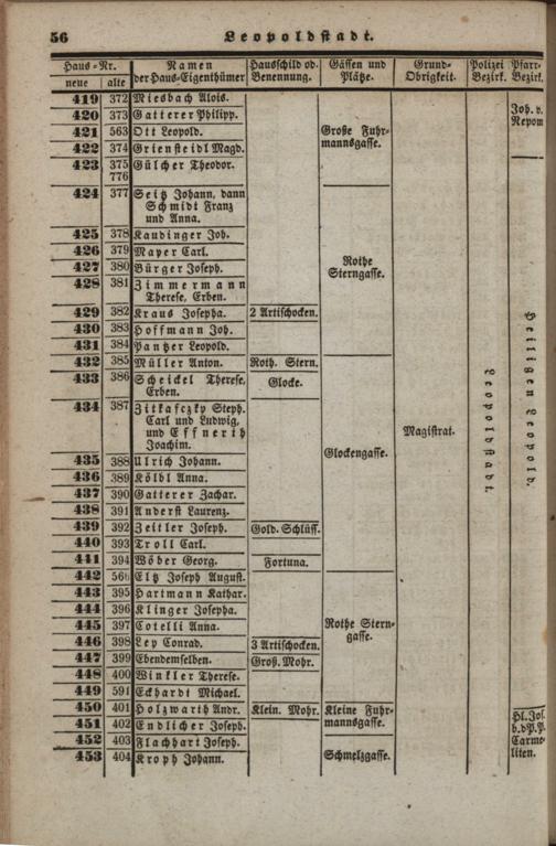 Neues, verbessertes und vermehrtes Häuser-Schema der k. k. Haupt- und Residenzstadt Wien : mit ihren 34 Vorstädten, allen Neubauten und den angränzenden nahen Ortschaften, welche noch zu den Polizei-Bezirken Wiens gehören, als: Brigittenau, Währing, Hernals, Neulerchenfeld, Fünf- und Sechshaus, Rustendorf, Braunhirschen, Reindorf, dann Gaudenzdorf ; mit genauer Angabe der Haus-Nummern...