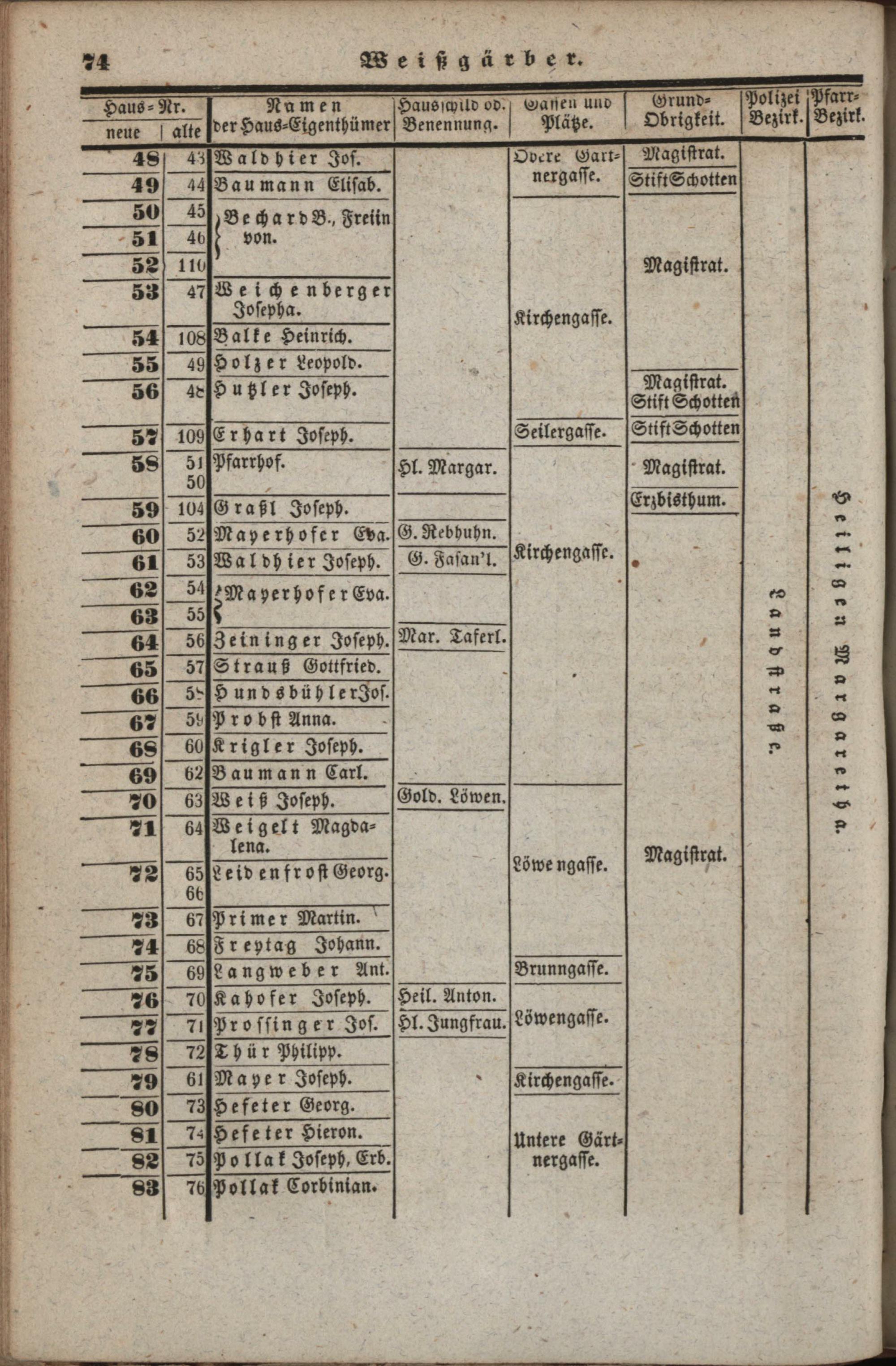 Neues, verbessertes und vermehrtes Häuser-Schema der k. k. Haupt- und Residenzstadt Wien : mit ihren 34 Vorstädten, allen Neubauten und den angränzenden nahen Ortschaften, welche noch zu den Polizei-Bezirken Wiens gehören, als: Brigittenau, Währing, Hernals, Neulerchenfeld, Fünf- und Sechshaus, Rustendorf, Braunhirschen, Reindorf, dann Gaudenzdorf ; mit genauer Angabe der Haus-Nummern...