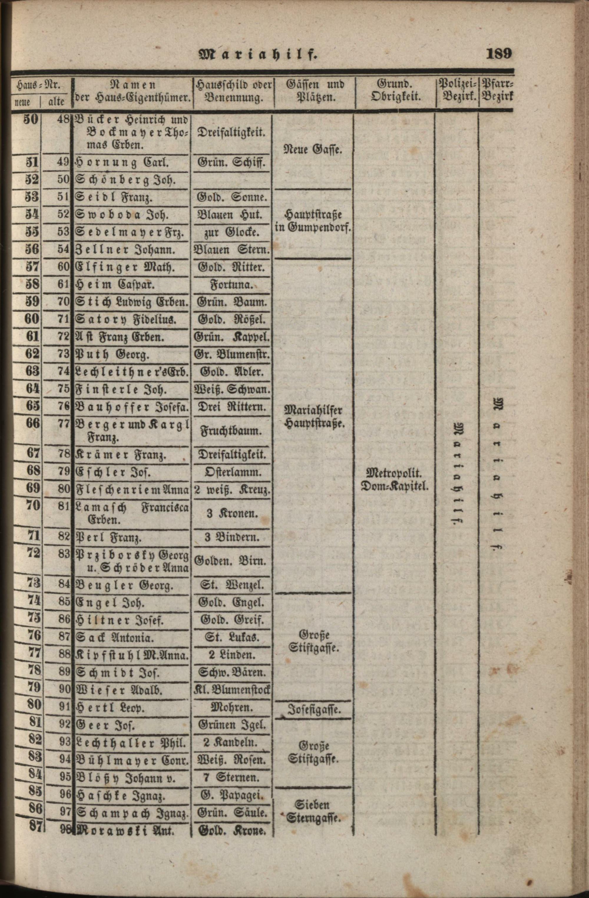 Neues, verbessertes und vermehrtes Häuser-Schema der k. k. Haupt- und Residenzstadt Wien : mit ihren 34 Vorstädten, allen Neubauten und den angränzenden nahen Ortschaften, welche noch zu den Polizei-Bezirken Wiens gehören, als: Brigittenau, Währing, Hernals, Neulerchenfeld, Fünf- und Sechshaus, Rustendorf, Braunhirschen, Reindorf, dann Gaudenzdorf ; mit genauer Angabe der Haus-Nummern...