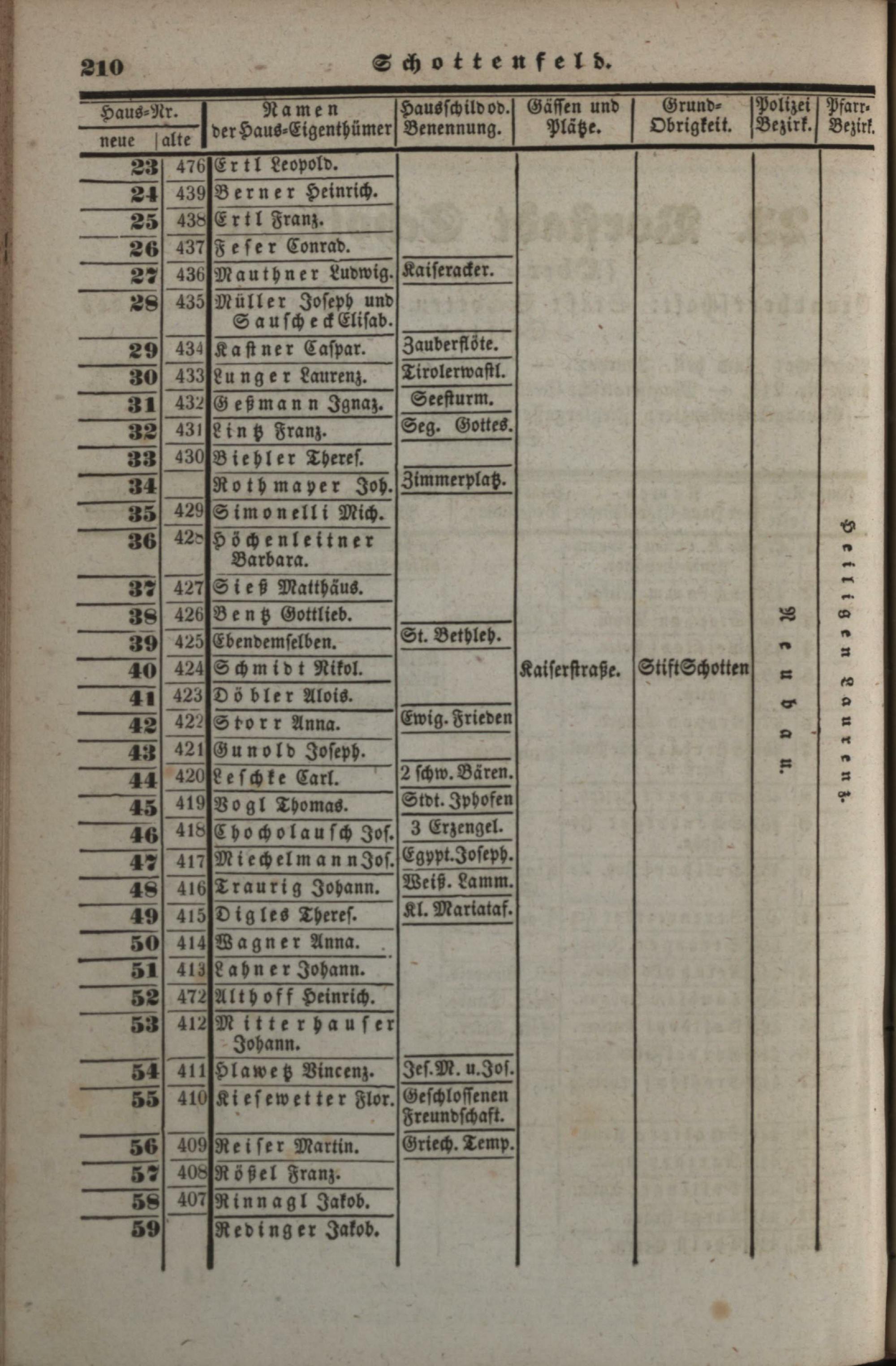 Neues, verbessertes und vermehrtes Häuser-Schema der k. k. Haupt- und Residenzstadt Wien : mit ihren 34 Vorstädten, allen Neubauten und den angränzenden nahen Ortschaften, welche noch zu den Polizei-Bezirken Wiens gehören, als: Brigittenau, Währing, Hernals, Neulerchenfeld, Fünf- und Sechshaus, Rustendorf, Braunhirschen, Reindorf, dann Gaudenzdorf ; mit genauer Angabe der Haus-Nummern...
