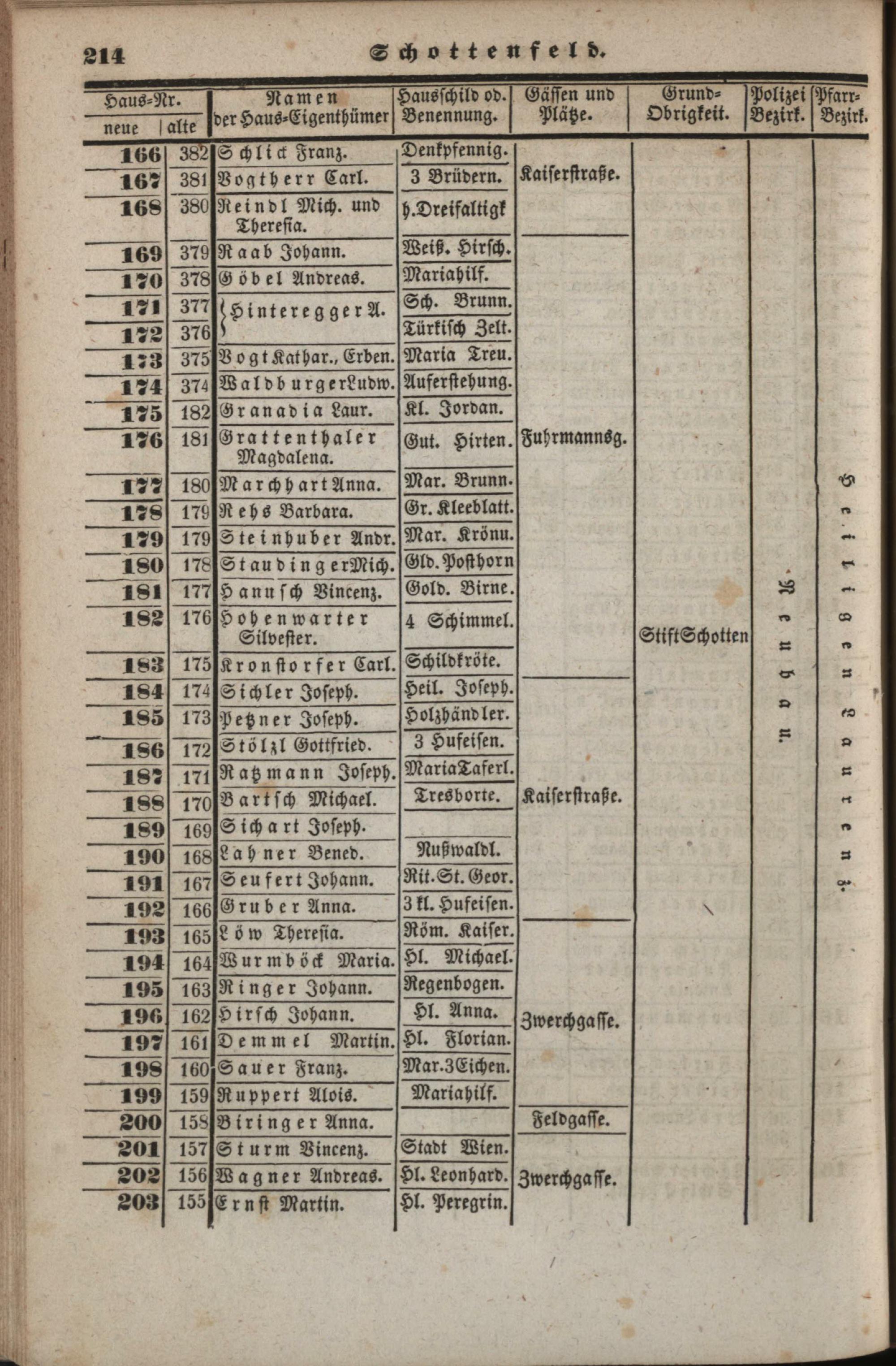 Neues, verbessertes und vermehrtes Häuser-Schema der k. k. Haupt- und Residenzstadt Wien : mit ihren 34 Vorstädten, allen Neubauten und den angränzenden nahen Ortschaften, welche noch zu den Polizei-Bezirken Wiens gehören, als: Brigittenau, Währing, Hernals, Neulerchenfeld, Fünf- und Sechshaus, Rustendorf, Braunhirschen, Reindorf, dann Gaudenzdorf ; mit genauer Angabe der Haus-Nummern...