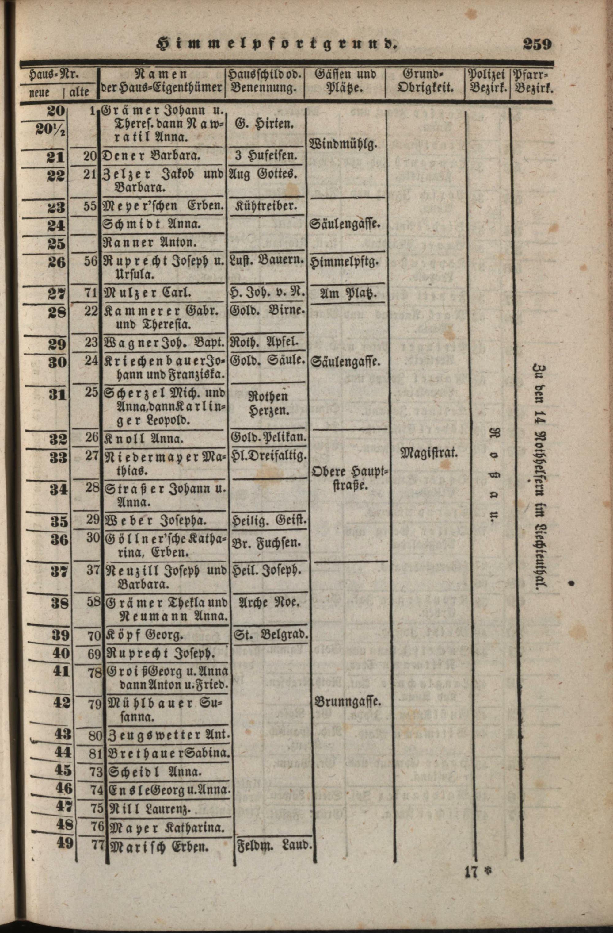 Neues, verbessertes und vermehrtes Häuser-Schema der k. k. Haupt- und Residenzstadt Wien : mit ihren 34 Vorstädten, allen Neubauten und den angränzenden nahen Ortschaften, welche noch zu den Polizei-Bezirken Wiens gehören, als: Brigittenau, Währing, Hernals, Neulerchenfeld, Fünf- und Sechshaus, Rustendorf, Braunhirschen, Reindorf, dann Gaudenzdorf ; mit genauer Angabe der Haus-Nummern...