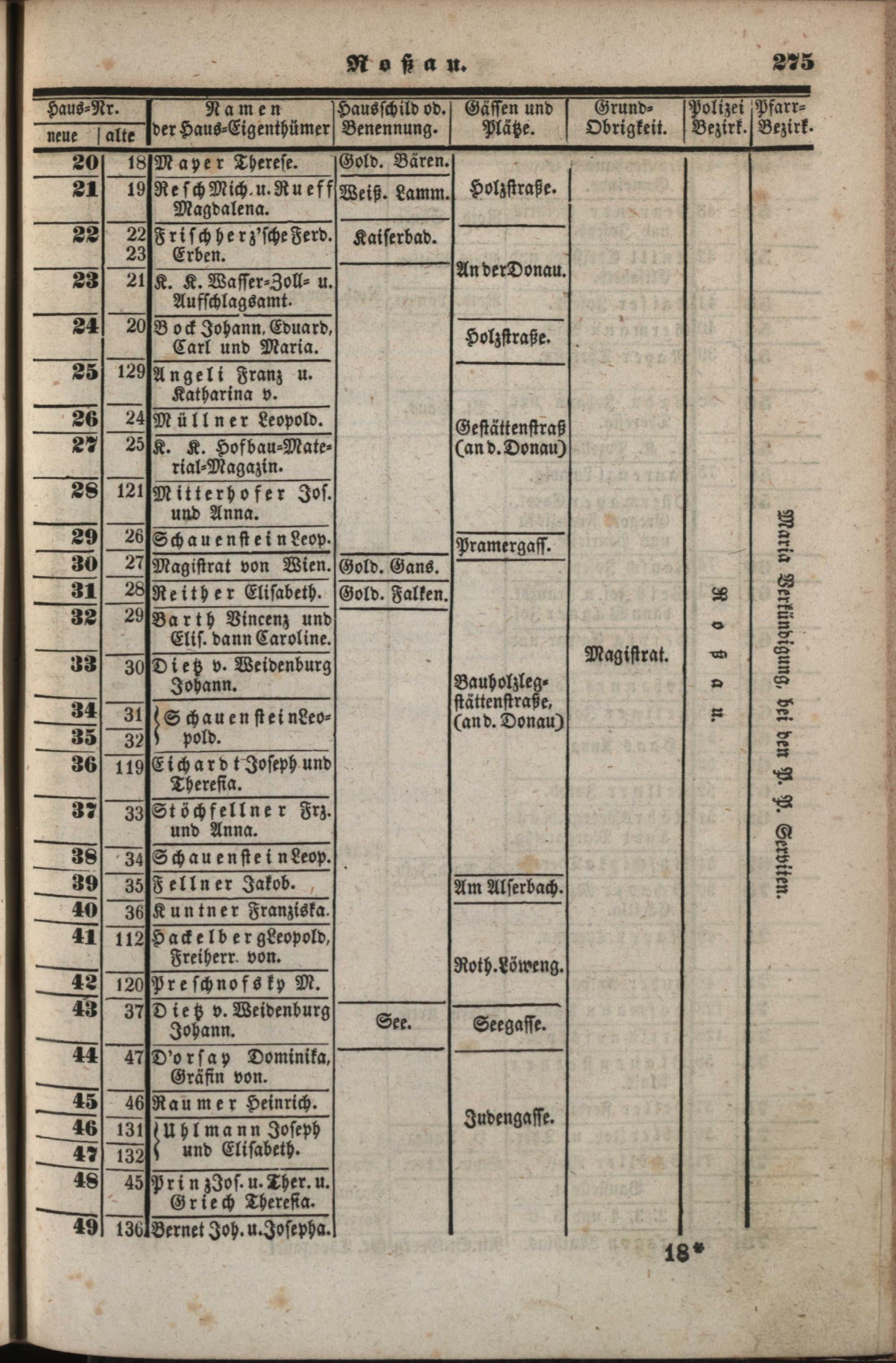 Neues, verbessertes und vermehrtes Häuser-Schema der k. k. Haupt- und Residenzstadt Wien : mit ihren 34 Vorstädten, allen Neubauten und den angränzenden nahen Ortschaften, welche noch zu den Polizei-Bezirken Wiens gehören, als: Brigittenau, Währing, Hernals, Neulerchenfeld, Fünf- und Sechshaus, Rustendorf, Braunhirschen, Reindorf, dann Gaudenzdorf ; mit genauer Angabe der Haus-Nummern...
