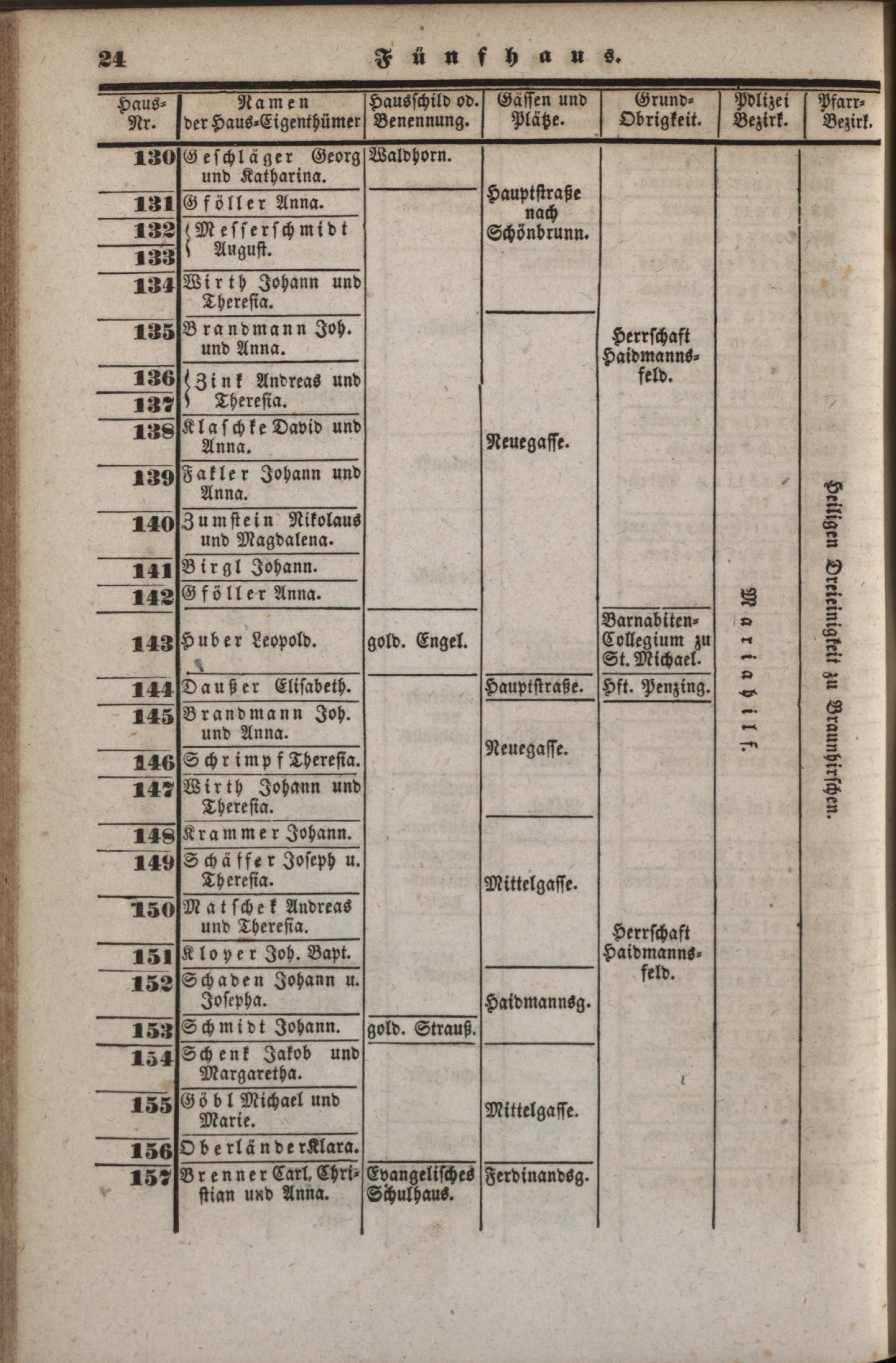 Neues, verbessertes und vermehrtes Häuser-Schema der k. k. Haupt- und Residenzstadt Wien : mit ihren 34 Vorstädten, allen Neubauten und den angränzenden nahen Ortschaften, welche noch zu den Polizei-Bezirken Wiens gehören, als: Brigittenau, Währing, Hernals, Neulerchenfeld, Fünf- und Sechshaus, Rustendorf, Braunhirschen, Reindorf, dann Gaudenzdorf ; mit genauer Angabe der Haus-Nummern...