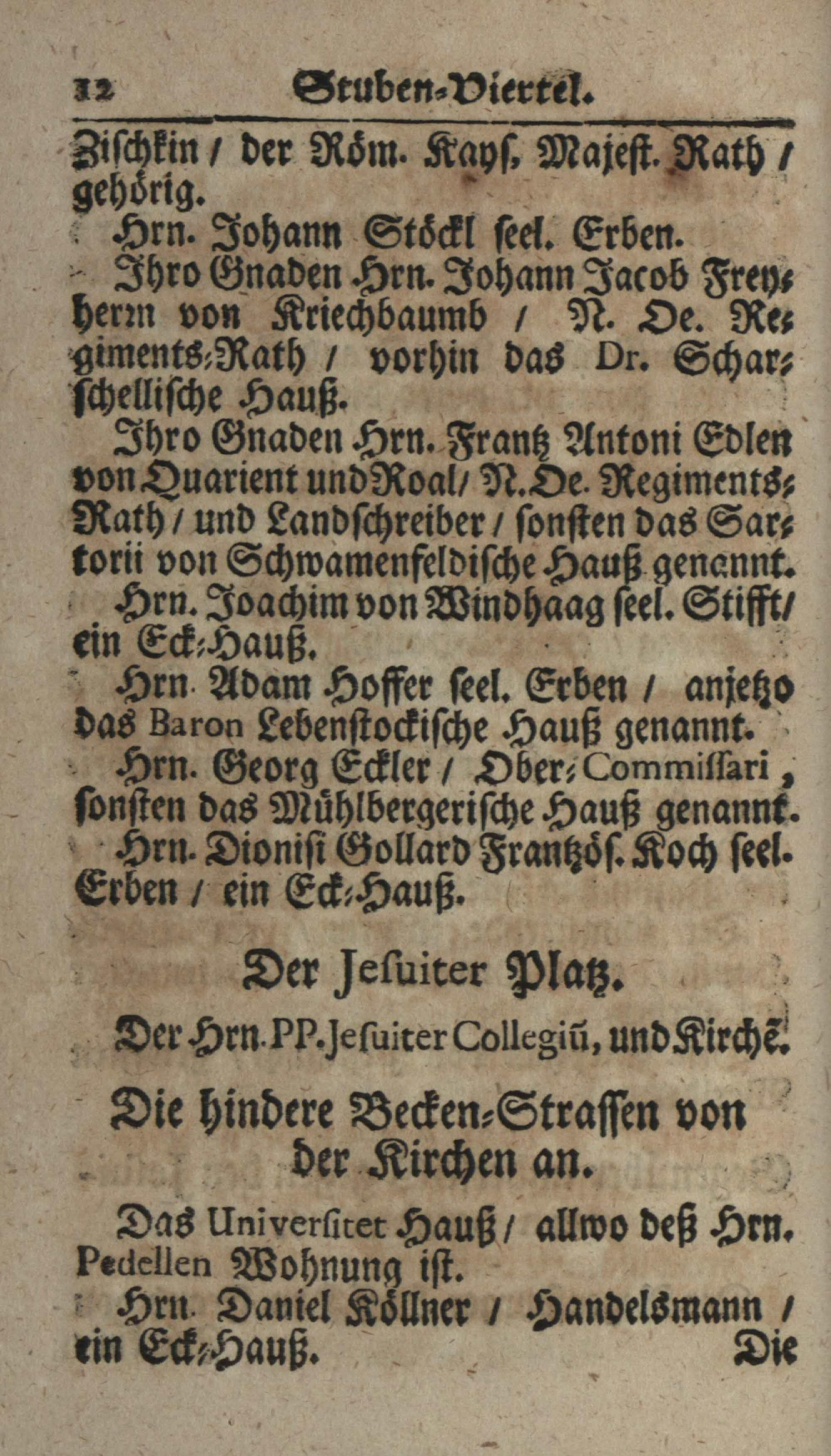 Schatz, Schutz und Schantz deß Ertz-Hertzogtumbs Oesterreich : das ist ein sehr genaue und ordentliche Beschreibung aller Gassen, Plätz, Palläst, Häuser und Kirchen der berühmten Haubt- und Kayserl. Residenz-Statt Wienn ; dermalen an statt eines neuen Jahres-Offert demütigist dediciert / von mir Johann Jordan