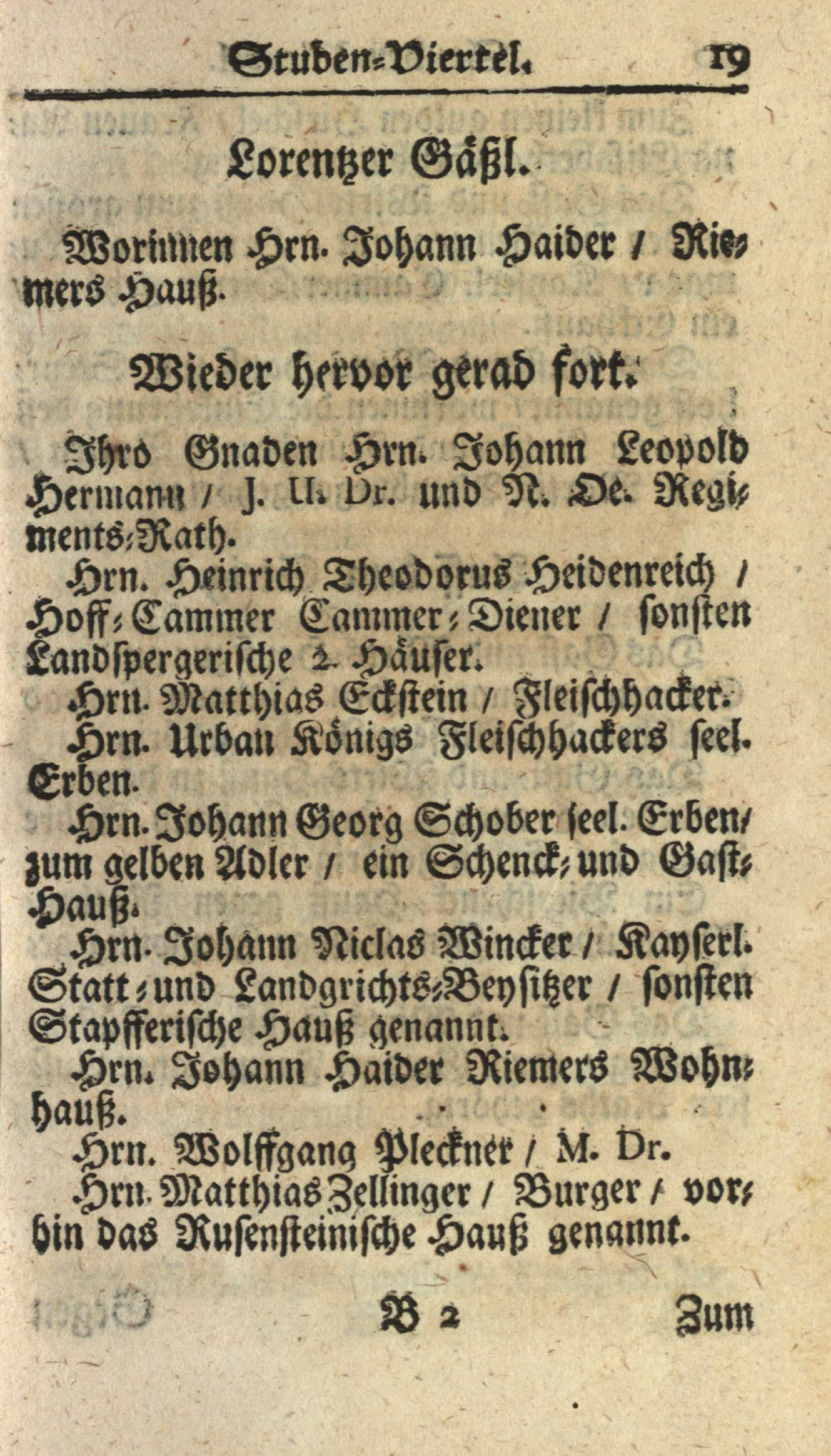 Schatz, Schutz und Schantz deß Ertz-Hertzogtumbs Oesterreich : das ist ein sehr genaue und ordentliche Beschreibung aller Gassen, Plätz, Palläst, Häuser und Kirchen der berühmten Haubt- und Kayserl. Residenz-Statt Wienn ; dermalen an statt eines neuen Jahres-Offert demütigist dediciert / von mir Johann Jordan