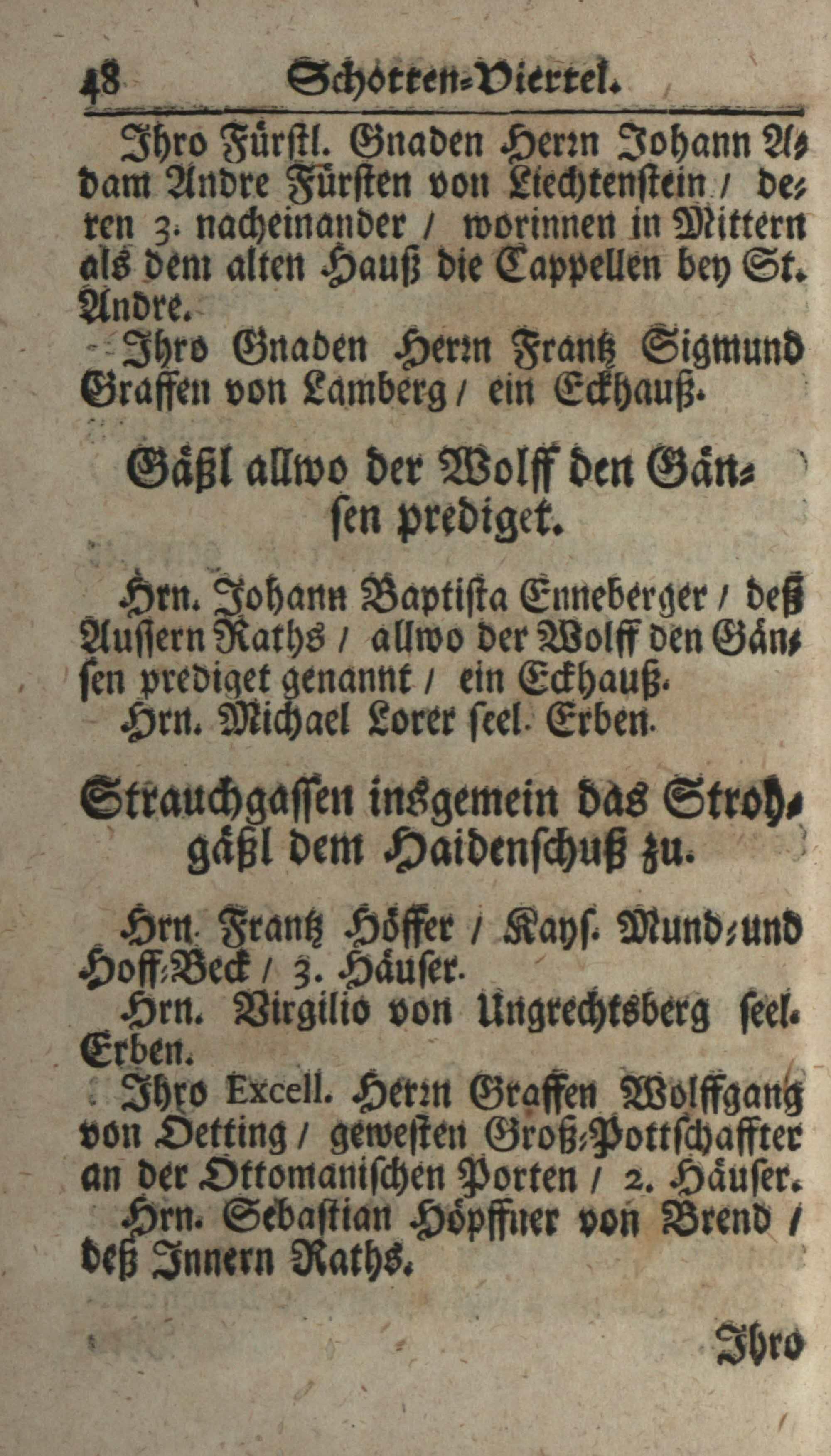 Schatz, Schutz und Schantz deß Ertz-Hertzogtumbs Oesterreich : das ist ein sehr genaue und ordentliche Beschreibung aller Gassen, Plätz, Palläst, Häuser und Kirchen der berühmten Haubt- und Kayserl. Residenz-Statt Wienn ; dermalen an statt eines neuen Jahres-Offert demütigist dediciert / von mir Johann Jordan