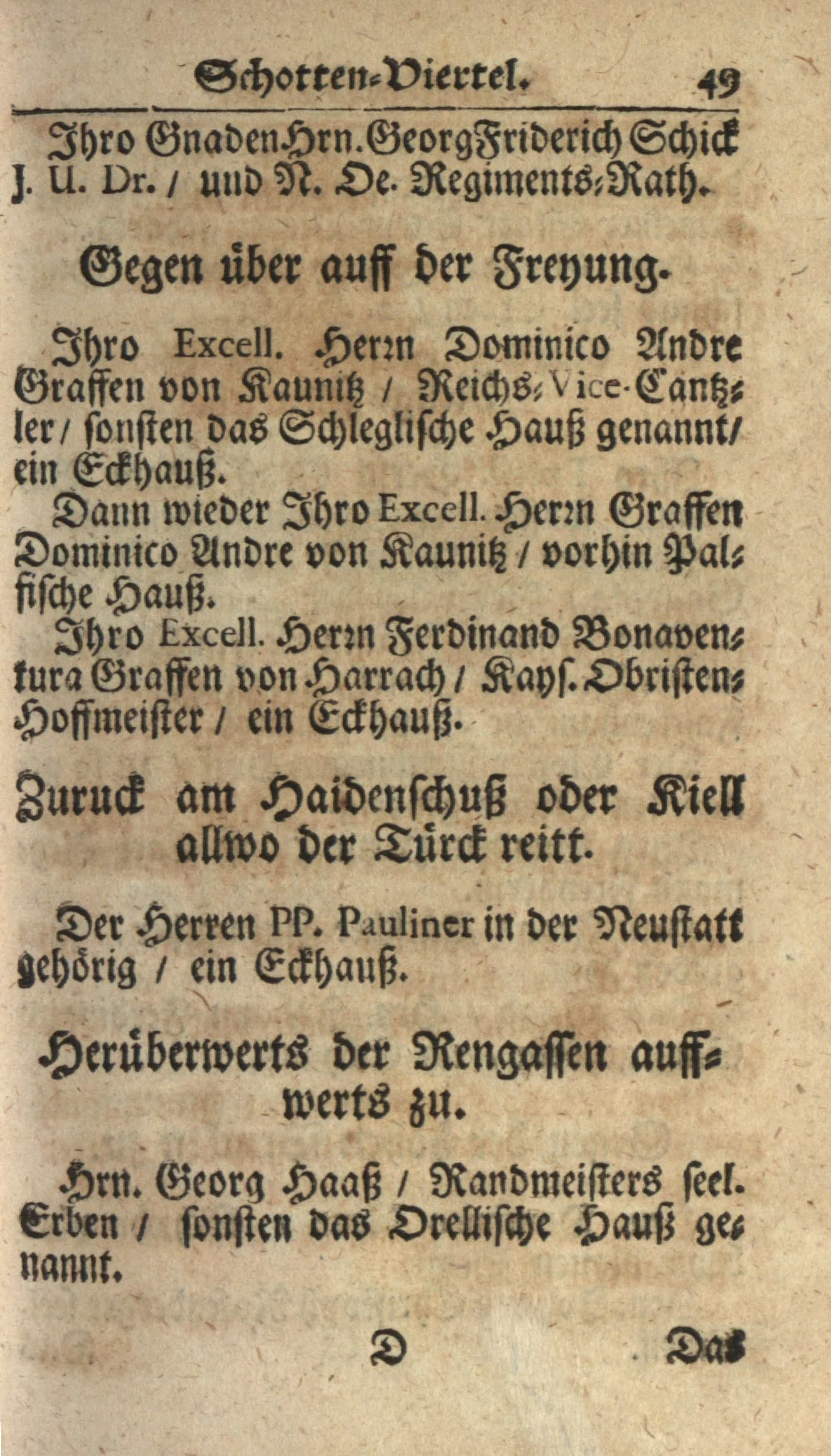 Schatz, Schutz und Schantz deß Ertz-Hertzogtumbs Oesterreich : das ist ein sehr genaue und ordentliche Beschreibung aller Gassen, Plätz, Palläst, Häuser und Kirchen der berühmten Haubt- und Kayserl. Residenz-Statt Wienn ; dermalen an statt eines neuen Jahres-Offert demütigist dediciert / von mir Johann Jordan
