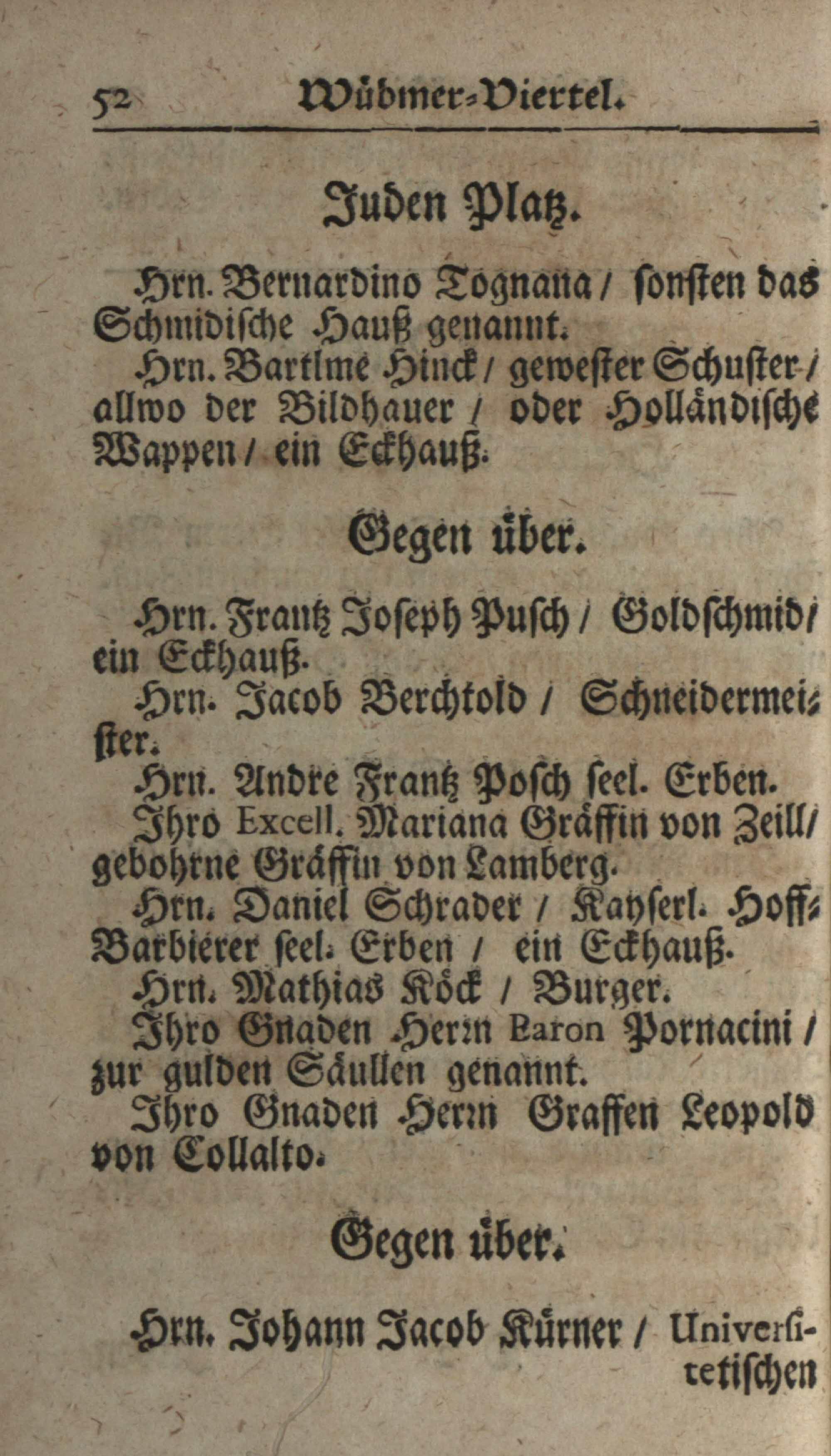 Schatz, Schutz und Schantz deß Ertz-Hertzogtumbs Oesterreich : das ist ein sehr genaue und ordentliche Beschreibung aller Gassen, Plätz, Palläst, Häuser und Kirchen der berühmten Haubt- und Kayserl. Residenz-Statt Wienn ; dermalen an statt eines neuen Jahres-Offert demütigist dediciert / von mir Johann Jordan