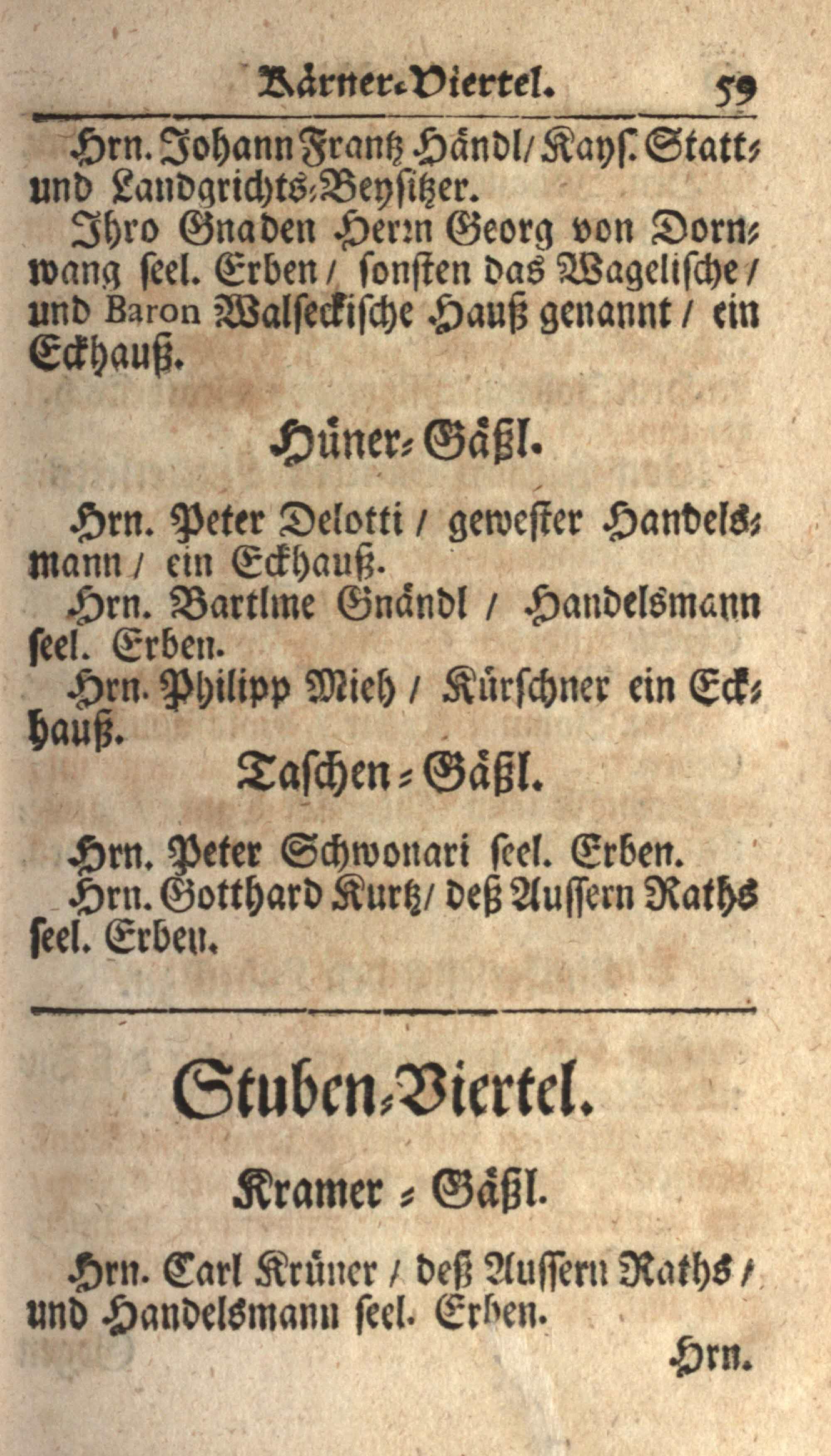 Schatz, Schutz und Schantz deß Ertz-Hertzogtumbs Oesterreich : das ist ein sehr genaue und ordentliche Beschreibung aller Gassen, Plätz, Palläst, Häuser und Kirchen der berühmten Haubt- und Kayserl. Residenz-Statt Wienn ; dermalen an statt eines neuen Jahres-Offert demütigist dediciert / von mir Johann Jordan