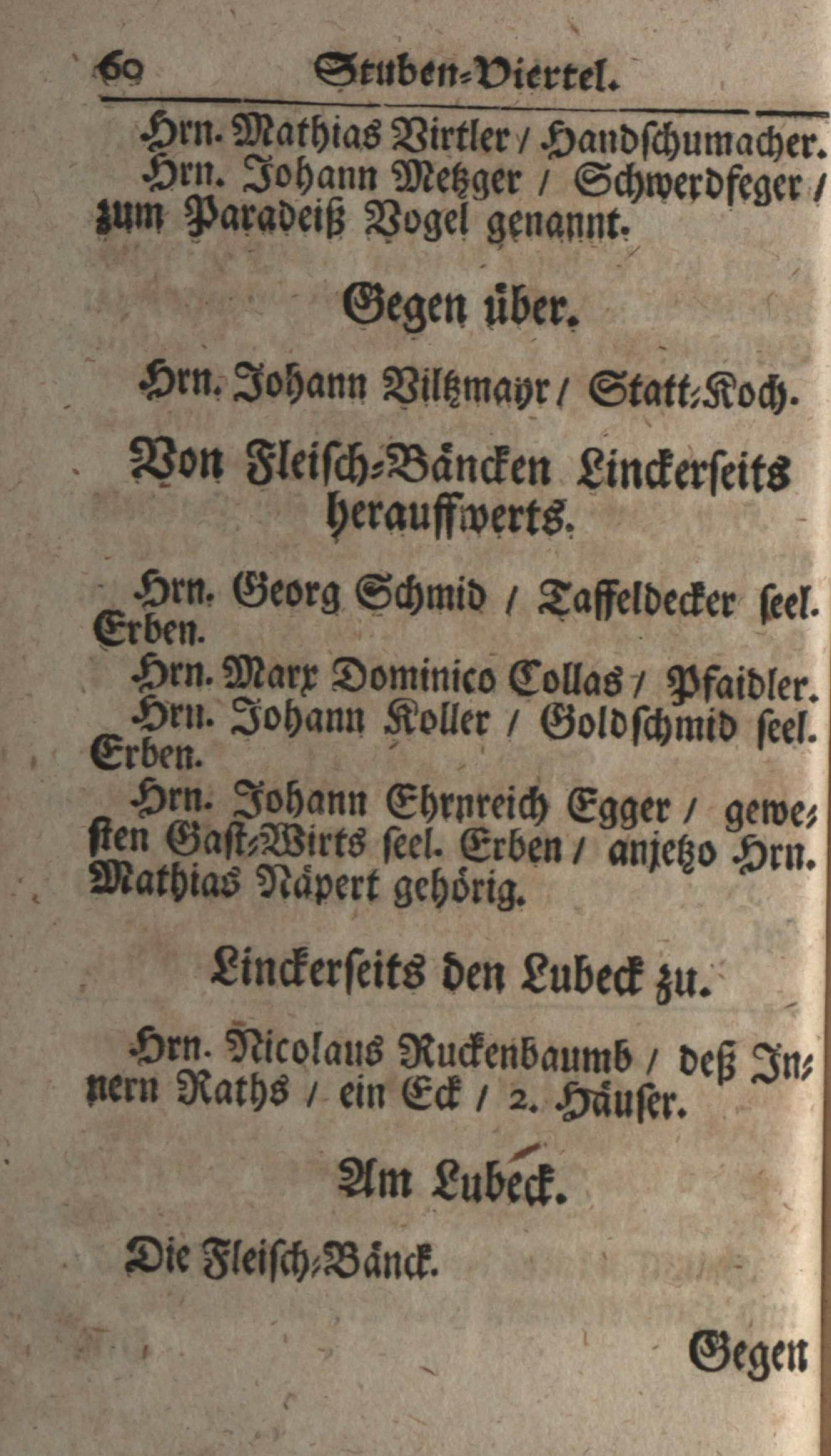 Schatz, Schutz und Schantz deß Ertz-Hertzogtumbs Oesterreich : das ist ein sehr genaue und ordentliche Beschreibung aller Gassen, Plätz, Palläst, Häuser und Kirchen der berühmten Haubt- und Kayserl. Residenz-Statt Wienn ; dermalen an statt eines neuen Jahres-Offert demütigist dediciert / von mir Johann Jordan