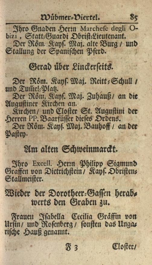 Schatz, Schutz und Schantz deß Ertz-Hertzogtumbs Oesterreich : das ist ein sehr genaue und ordentliche Beschreibung aller Gassen, Plätz, Palläst, Häuser und Kirchen der berühmten Haubt- und Kayserl. Residenz-Statt Wienn ; dermalen an statt eines neuen Jahres-Offert demütigist dediciert / von mir Johann Jordan