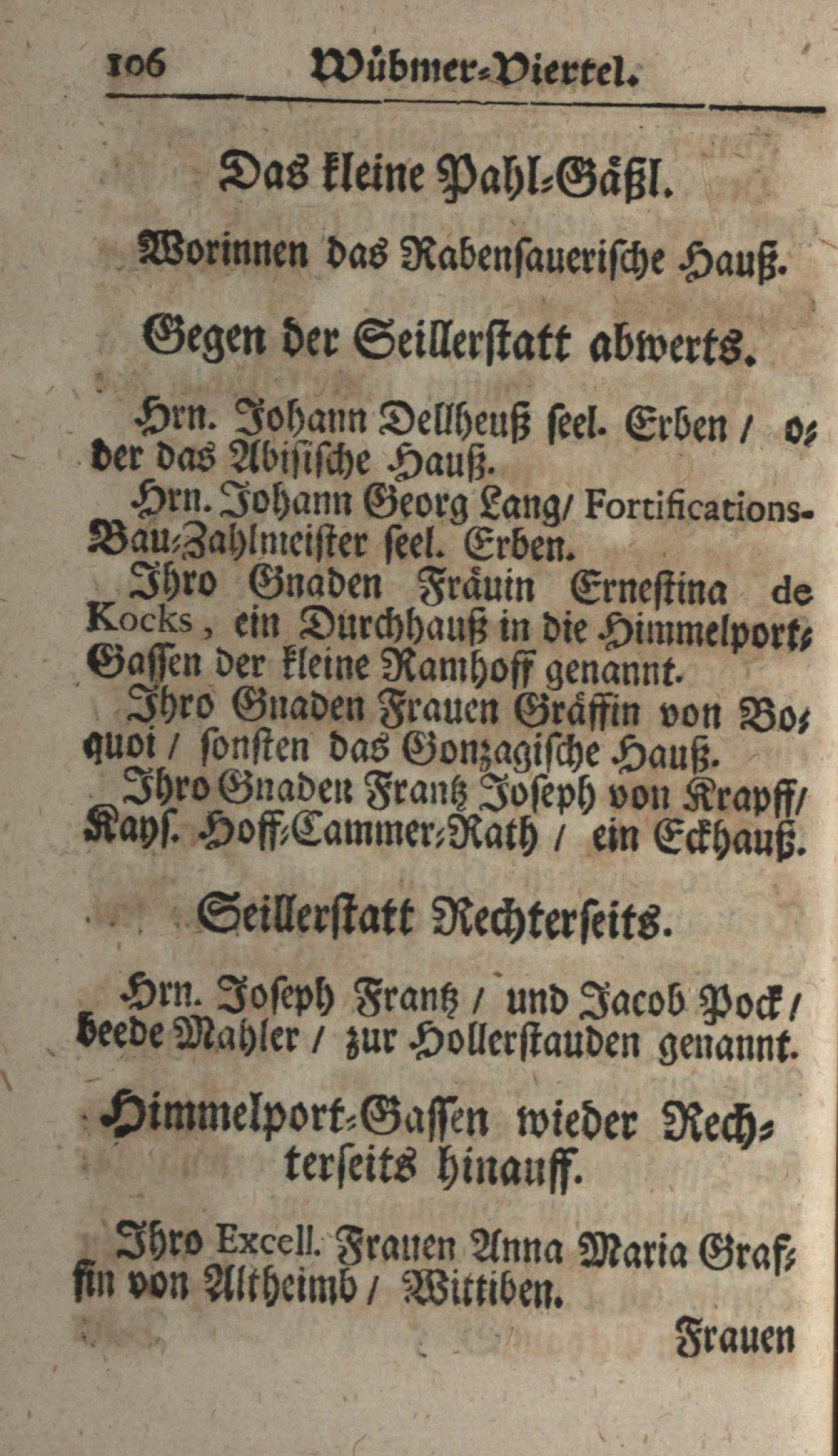 Schatz, Schutz und Schantz deß Ertz-Hertzogtumbs Oesterreich : das ist ein sehr genaue und ordentliche Beschreibung aller Gassen, Plätz, Palläst, Häuser und Kirchen der berühmten Haubt- und Kayserl. Residenz-Statt Wienn ; dermalen an statt eines neuen Jahres-Offert demütigist dediciert / von mir Johann Jordan