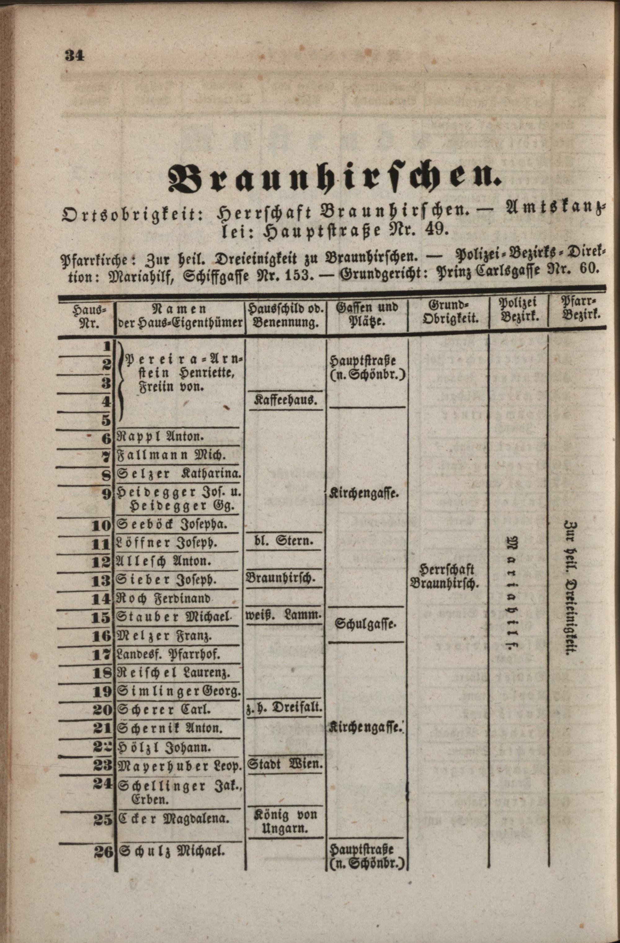 Neues, verbessertes und vermehrtes Häuser-Schema der k. k. Haupt- und Residenzstadt Wien : mit ihren 34 Vorstädten, allen Neubauten und den angränzenden nahen Ortschaften, welche noch zu den Polizei-Bezirken Wiens gehören, als: Brigittenau, Währing, Hernals, Neulerchenfeld, Fünf- und Sechshaus, Rustendorf, Braunhirschen, Reindorf, dann Gaudenzdorf ; mit genauer Angabe der Haus-Nummern...