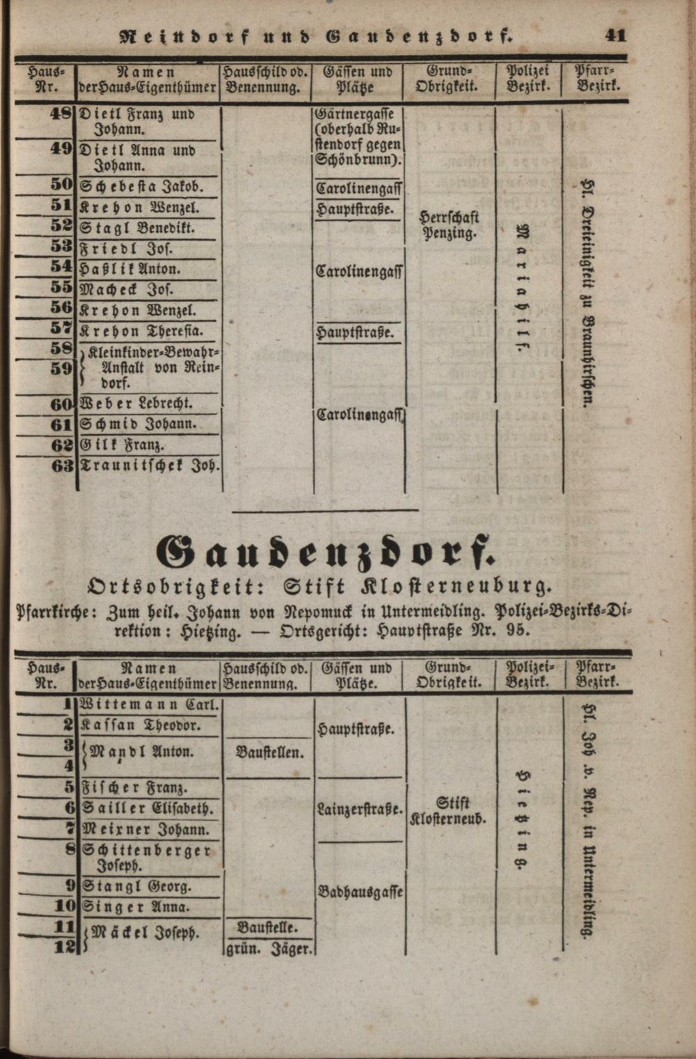 Neues, verbessertes und vermehrtes Häuser-Schema der k. k. Haupt- und Residenzstadt Wien : mit ihren 34 Vorstädten, allen Neubauten und den angränzenden nahen Ortschaften, welche noch zu den Polizei-Bezirken Wiens gehören, als: Brigittenau, Währing, Hernals, Neulerchenfeld, Fünf- und Sechshaus, Rustendorf, Braunhirschen, Reindorf, dann Gaudenzdorf ; mit genauer Angabe der Haus-Nummern...