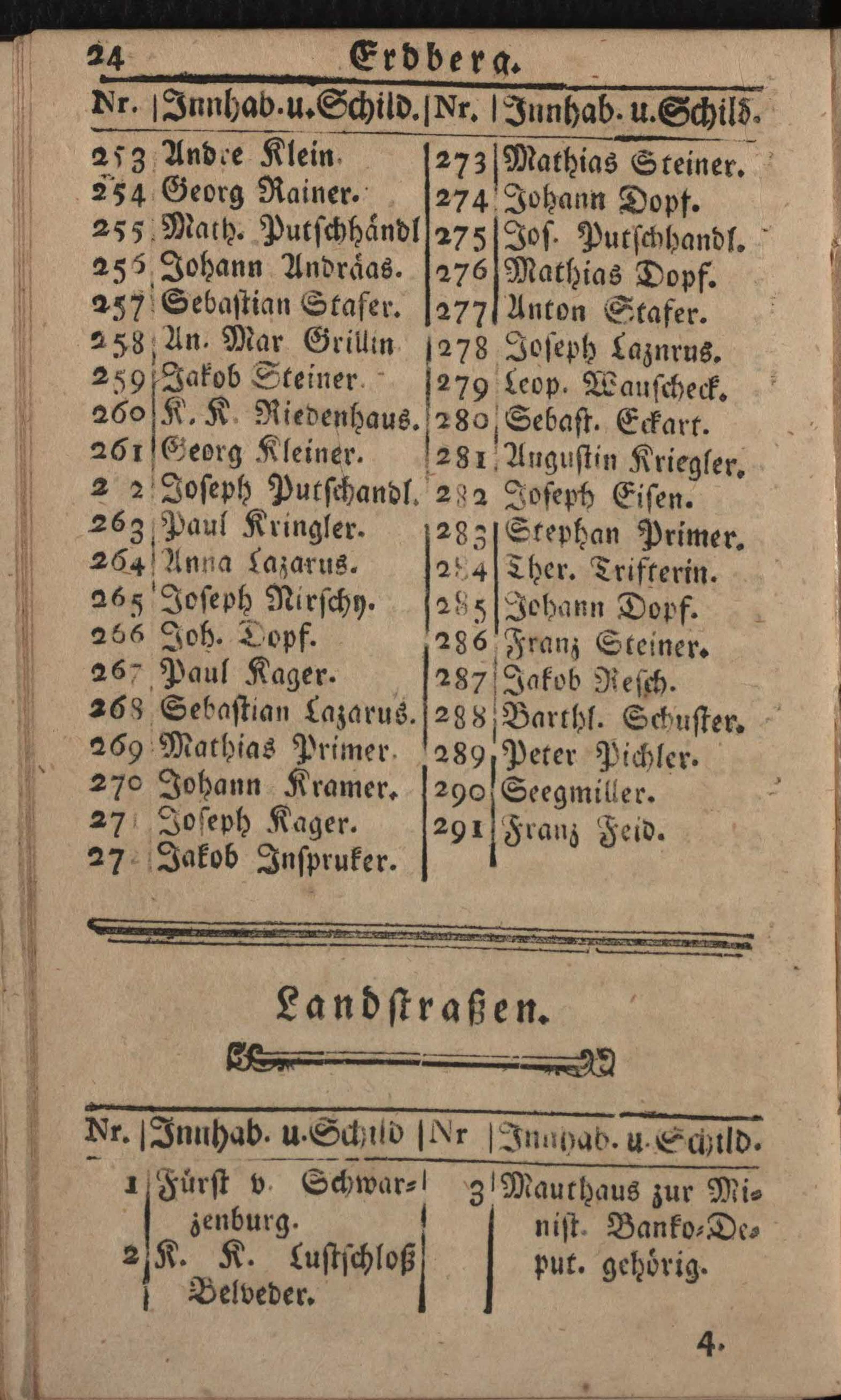 Verzeichniß der um die k.k. Haupt- und Residenzstadt Wien befindlichen Vorstädten, Gründen, Gässen, numerirten Häuser, Innhaber, und ihrer Schilde