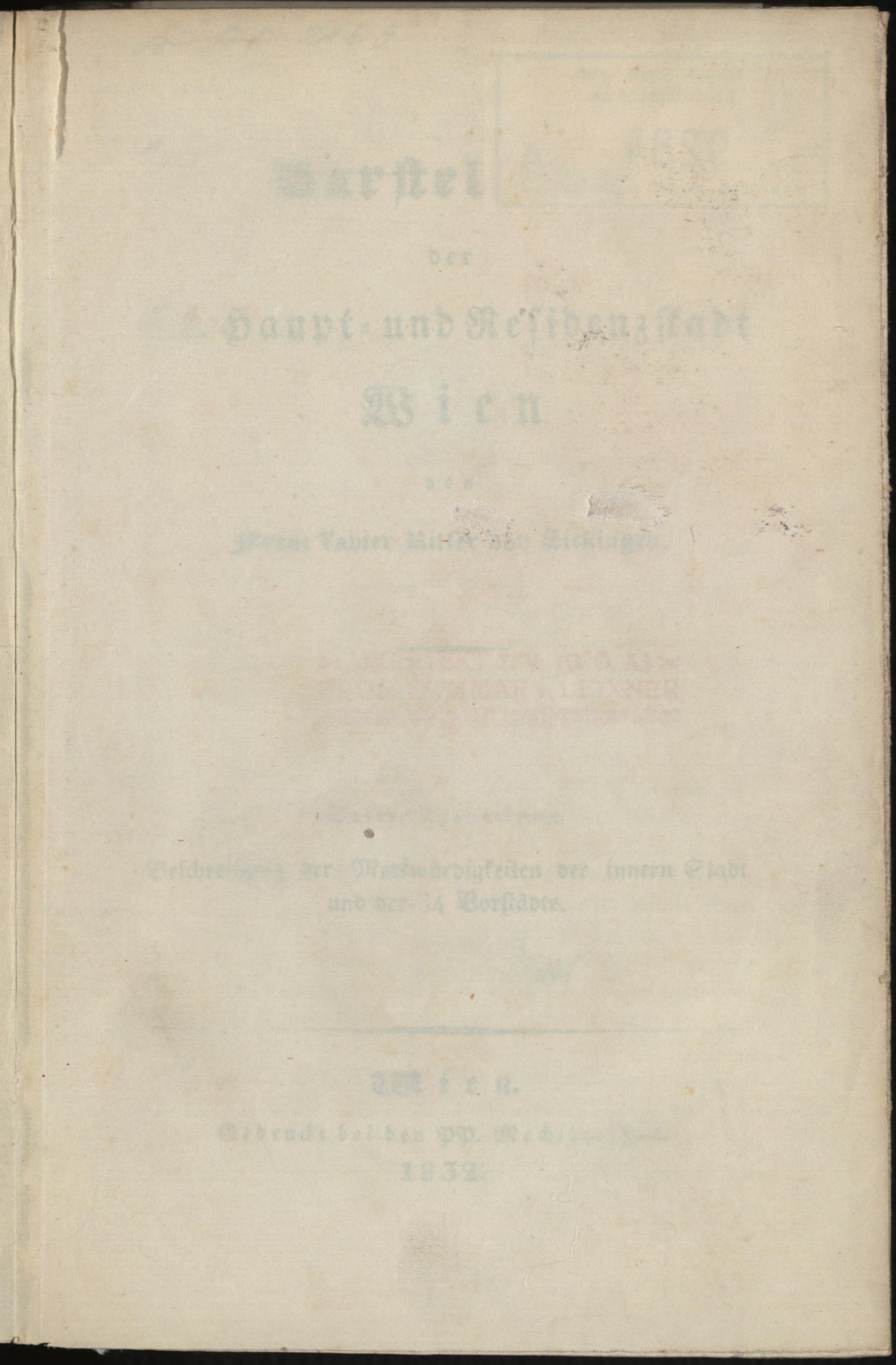 3 (1832) Beschreibung der Merkwürdigkeiten der innern Stadt und der 34 Vorstädte / von Franz Xavier Ritter von Sickingen