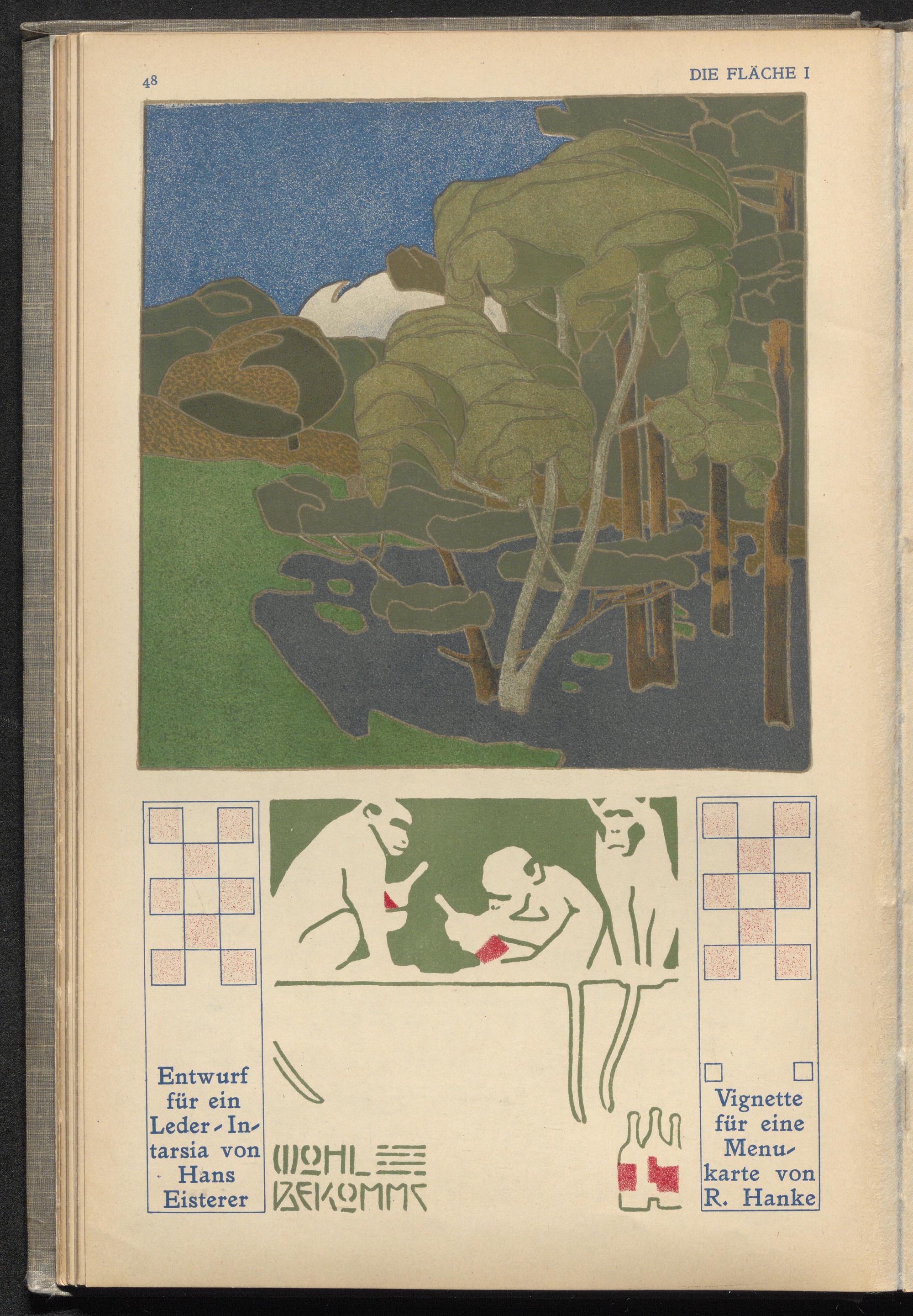 1: Die Fläche : Entwürfe für decorative Malerei, Placate, Buch- und Druckausstattung, Vorsatzpapier, Umschläge, Menu- und Geschäftskarten, Illustrationen ... etc. etc. / hrsg. von Felician Myrbach ...