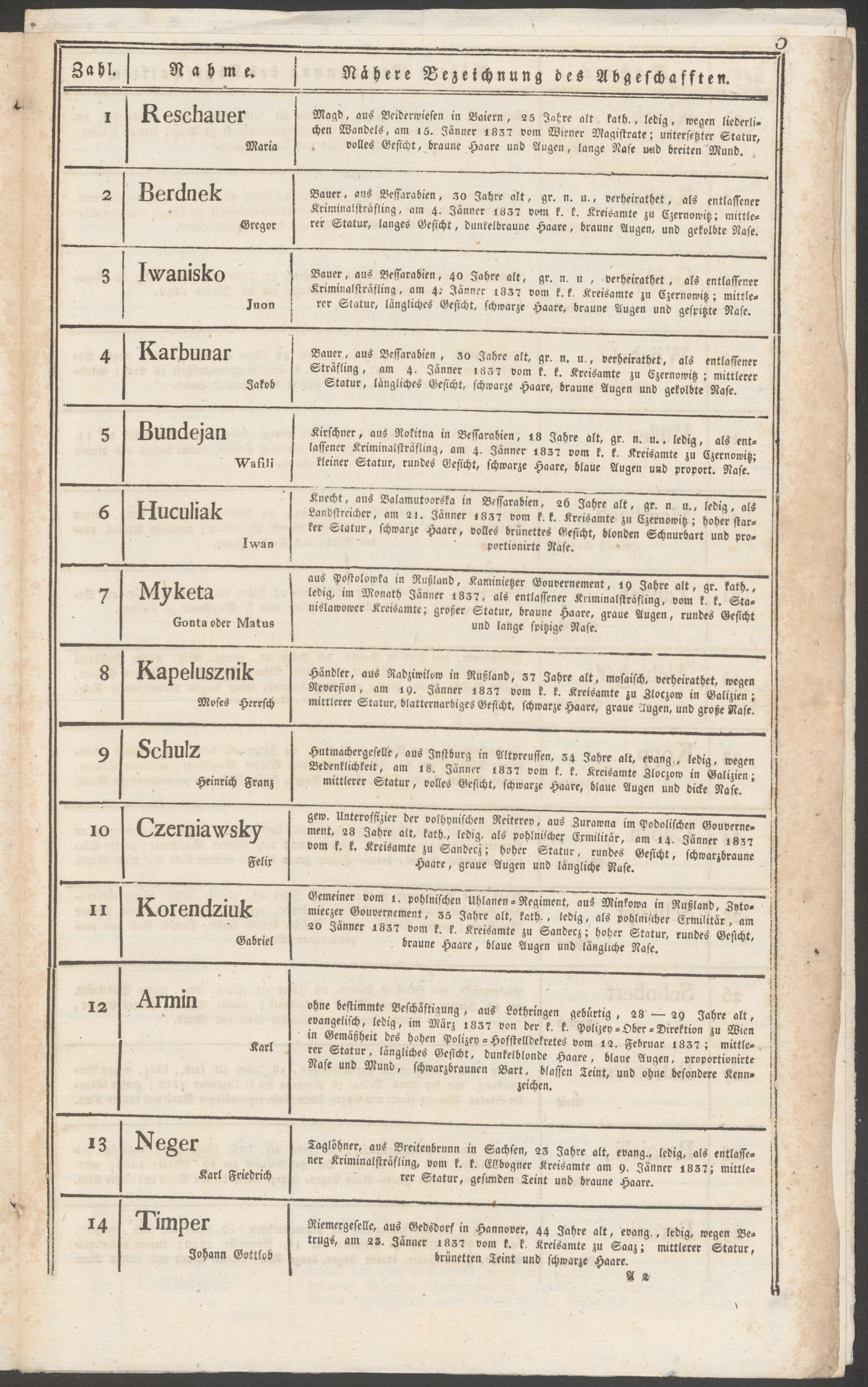 Verzeichniß der aus den k.k. Staaten im Laufe dieses Jahres abgeschafften Fremden