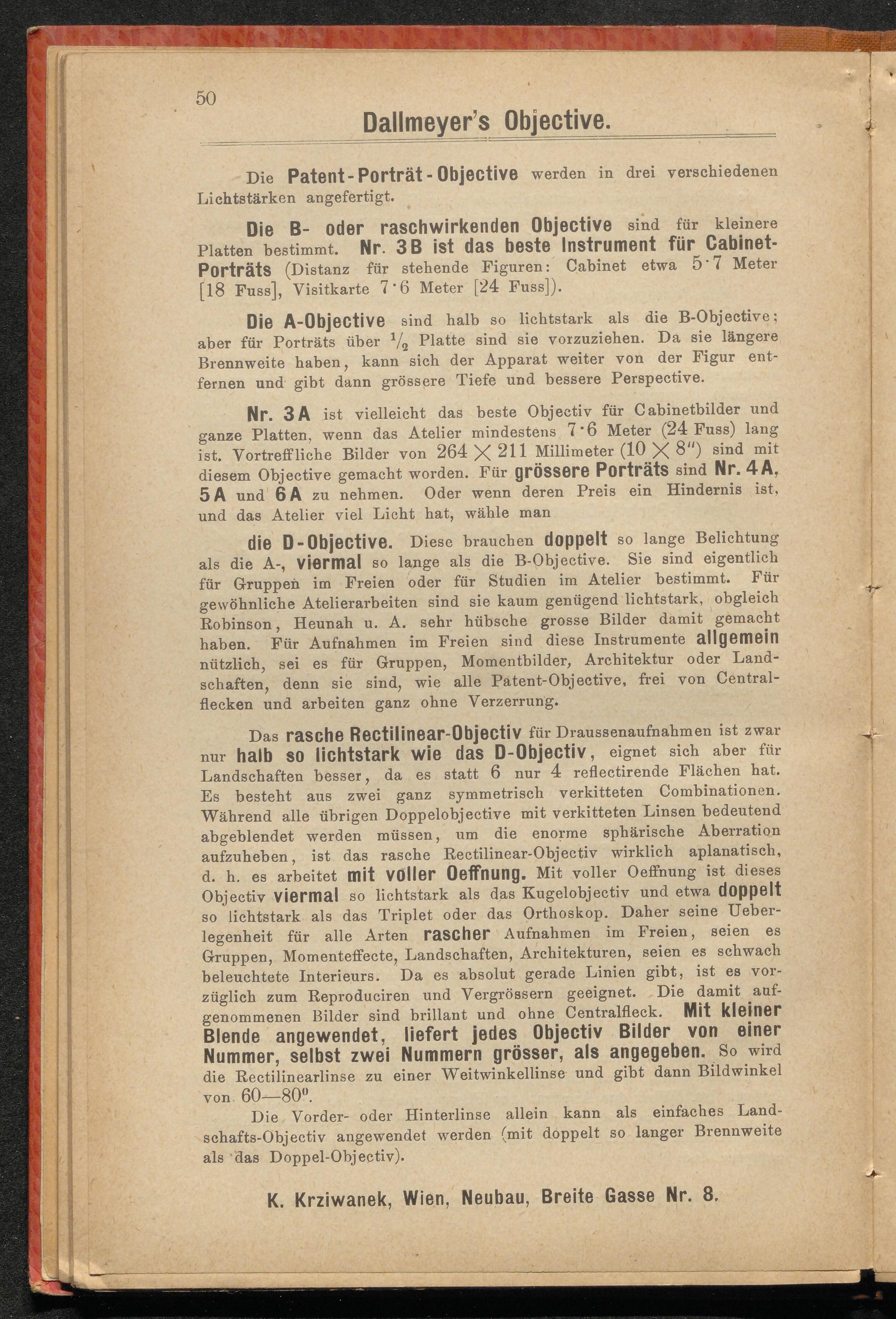 Preisliste : Fabrik und Lager sämmtlicher Bedarfs-Artikel für Phtographie, Fabrik photographischer Cartons und Lithographische Anstalt / K. Krziwanek, Wien, Neubau, Breite Gasse Nr. 8