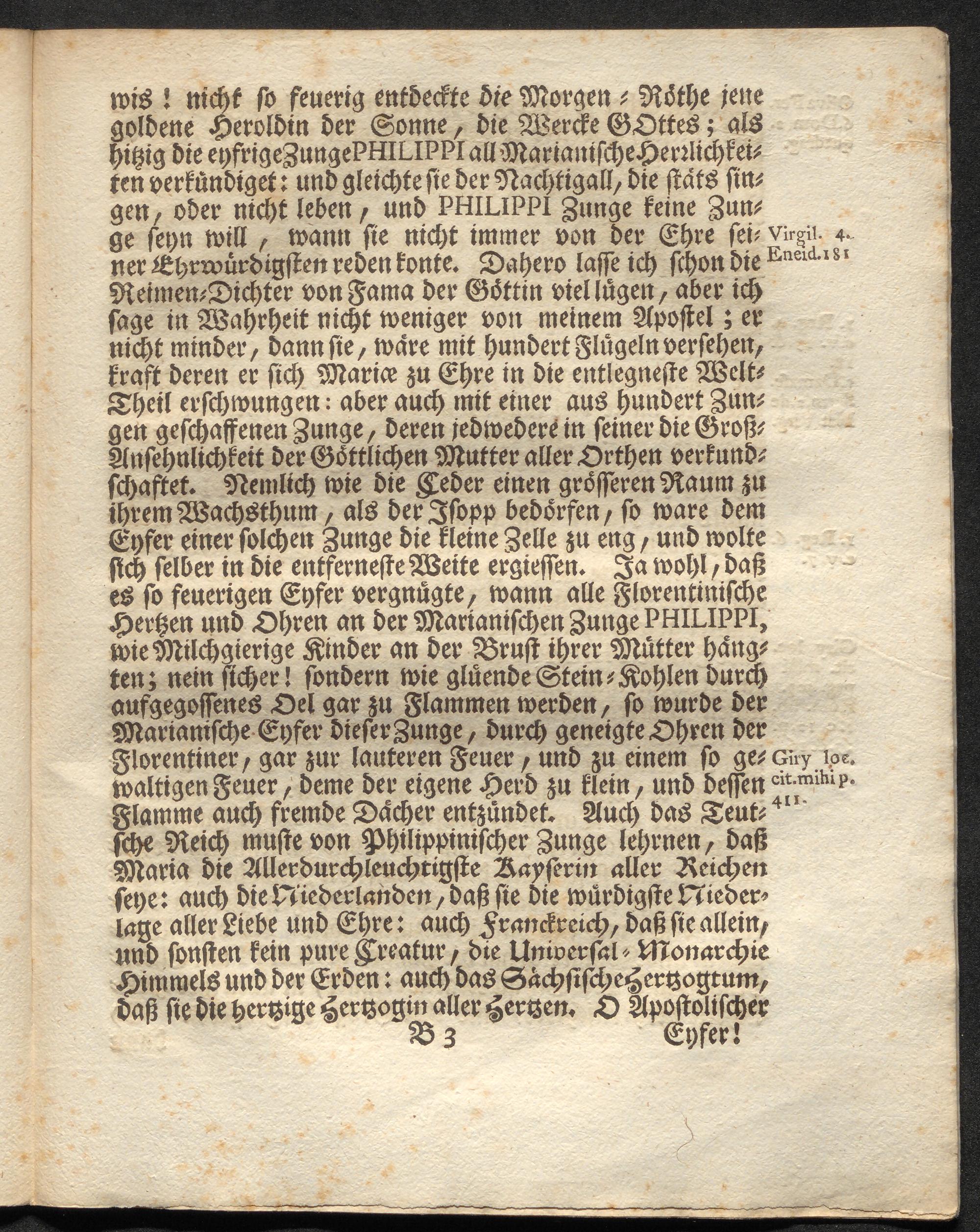 Lob- und Ehren-Rede, Uber dem Marianisch-Apostolischen Stifter Eines Heiligen Philippi Benitii, Patriarchen, und Fort-Pflantzers Des preyß-würdigen Orden Der Dienern Mariæ : Da in dem Löblichen Gottes-Haus und Closter-Kirchen deren WW. EE. PP. Serviten zu Maria Loreto in Hungarn, in Gegenwart seiner, und zahlbar anderen Ehrsamen, dahin Wallfahrtenden Pfarr-Gemeinden, dieses grossen Vatters Festag den 24. Augusti 1749 mit gewöhnlicher Feyerlichkeit begangen wurde / Vorgetragen Von P. Theophilo Heimb, des Heil. und von seinem Ursprung Exemten Cistercienser-Ordens in dem Marianischen Stift und Closter zum H. Creutz im Wald Professo, und dermalen in der bemeldeten Stift incorporirten Pfarr München-dorf Seelsorger