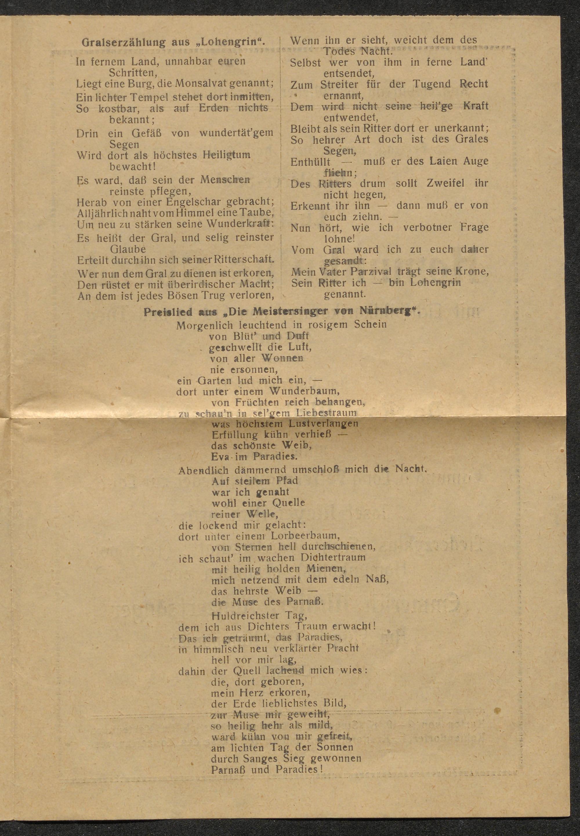 Sonntag, den 21. April 1918, 4 Uhr nachmittags - Letztes Populäres Orchesterkonzert im Großen Saale des Wiener Konzerthauses : Dirigent: Martin Spörr. Mitwirkend: Albin v. Rittersheim (Volksoper) / Wiener Konzert-Verein