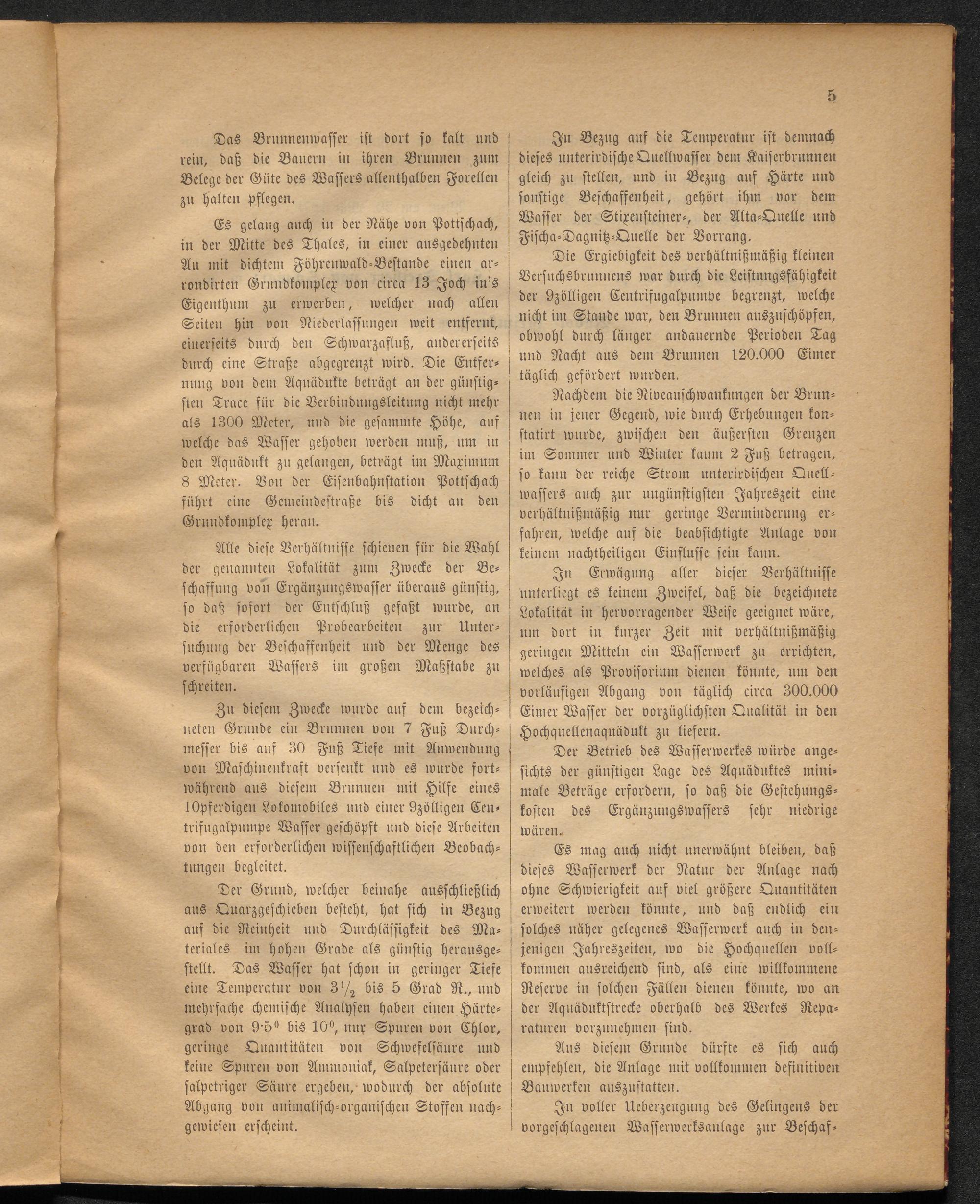 Erläuterungsbericht und Offert für das Projekt einer Wasserwerksanlage zur Beschaffung von Ergänzungswasser für den Hochquellen-Aquädukt