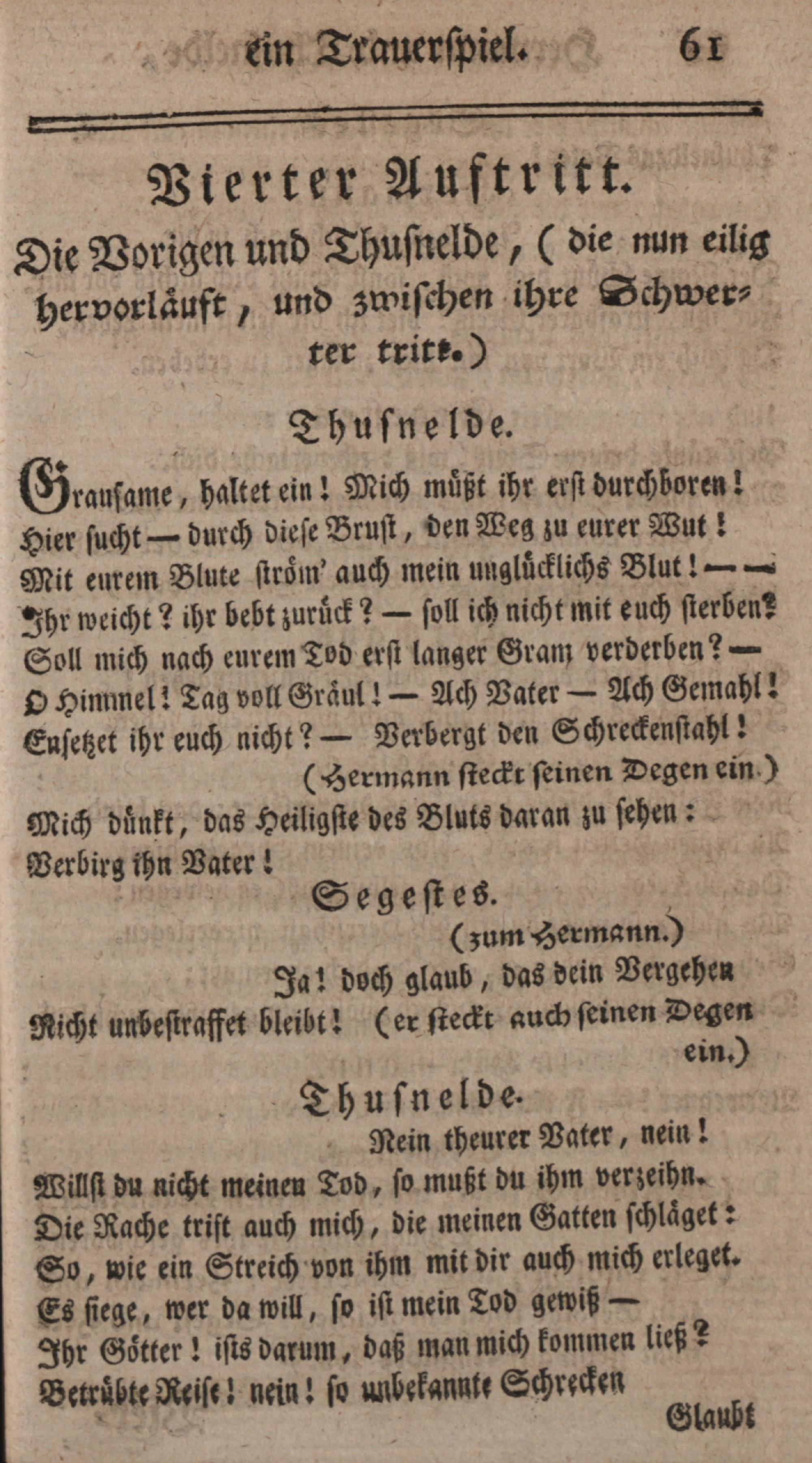 Hermann und Thusnelde : Ein Trauerspiel in Versen / Vom Verfaßer des Aurelius
