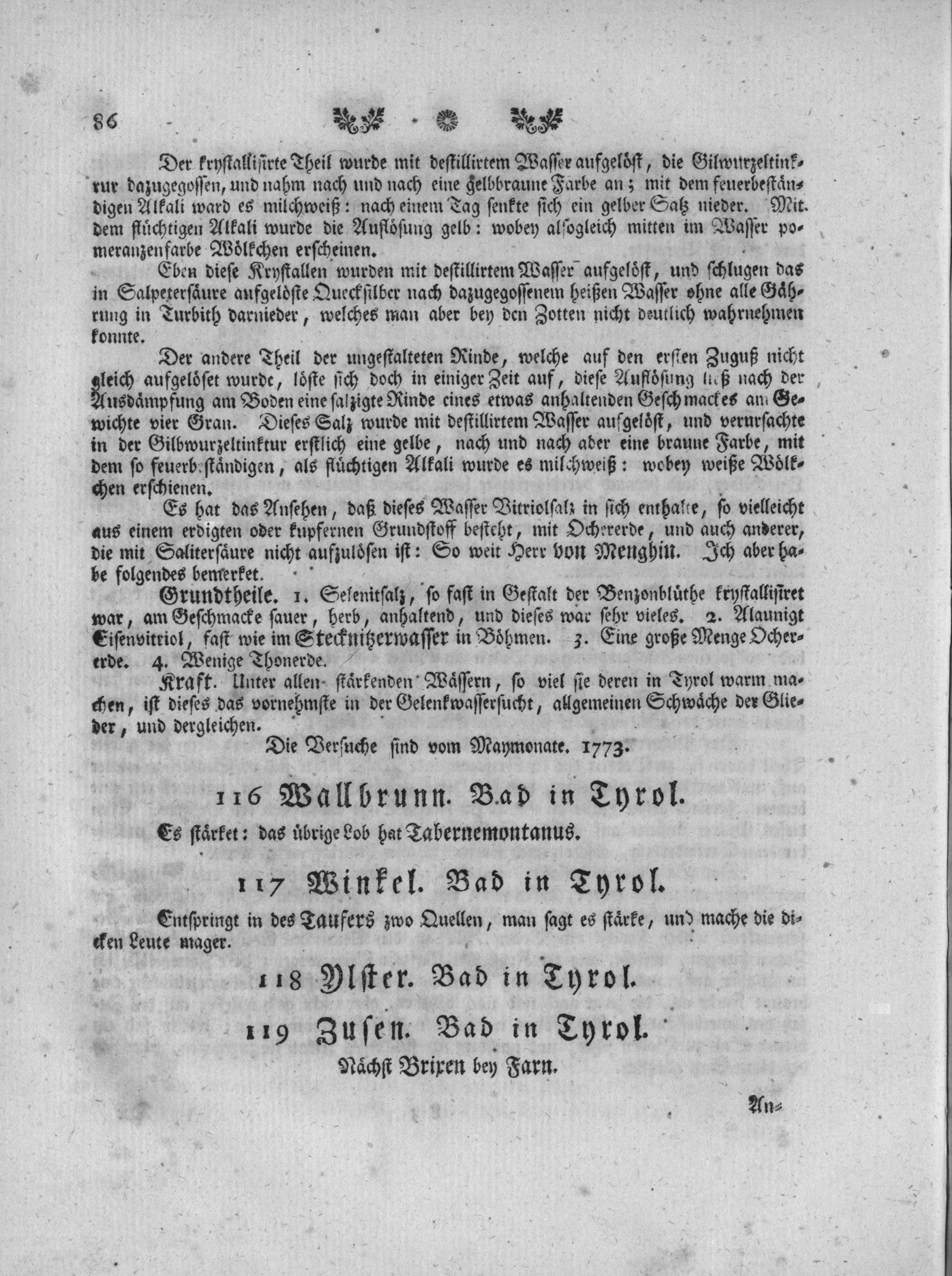 Gesundbrunnen der Oesterreichischen Monarchie / Heinrich Johann von Crantz Ihro Kaiserl. Königl. Apostolischen Mäjestät N. Oe. Regierungsrath der Kaiserlich Königl. Akademie der Naturforscher der bothanischen Gesellschaft zu Florenz der Akademie der Wissenschaften zu Roveredo p. p. Mitglieds gravé de J.C. de Reinsperger