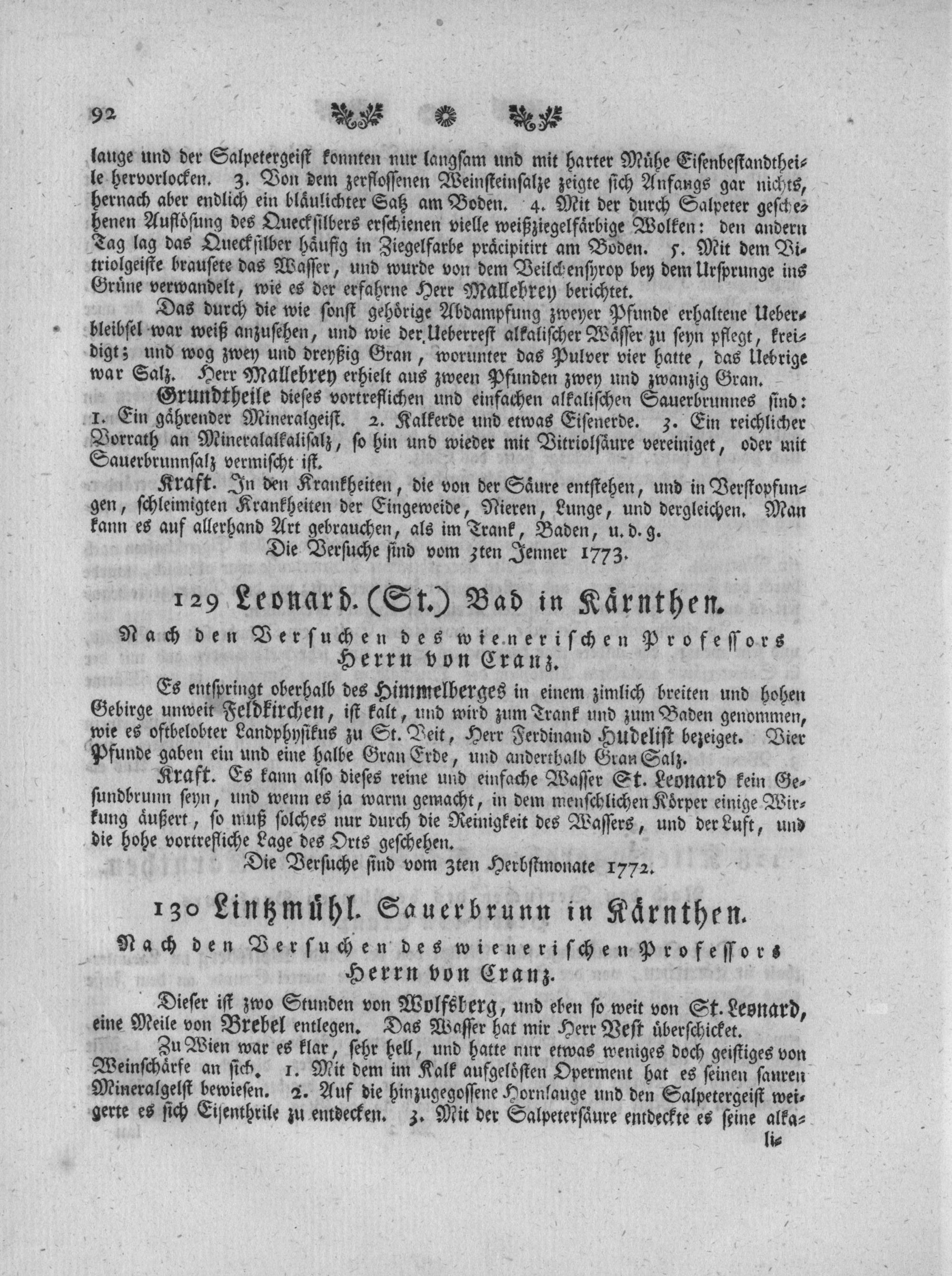 Gesundbrunnen der Oesterreichischen Monarchie / Heinrich Johann von Crantz Ihro Kaiserl. Königl. Apostolischen Mäjestät N. Oe. Regierungsrath der Kaiserlich Königl. Akademie der Naturforscher der bothanischen Gesellschaft zu Florenz der Akademie der Wissenschaften zu Roveredo p. p. Mitglieds gravé de J.C. de Reinsperger