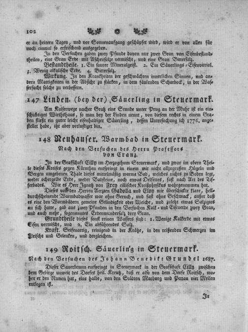 Gesundbrunnen der Oesterreichischen Monarchie / Heinrich Johann von Crantz Ihro Kaiserl. Königl. Apostolischen Mäjestät N. Oe. Regierungsrath der Kaiserlich Königl. Akademie der Naturforscher der bothanischen Gesellschaft zu Florenz der Akademie der Wissenschaften zu Roveredo p. p. Mitglieds gravé de J.C. de Reinsperger
