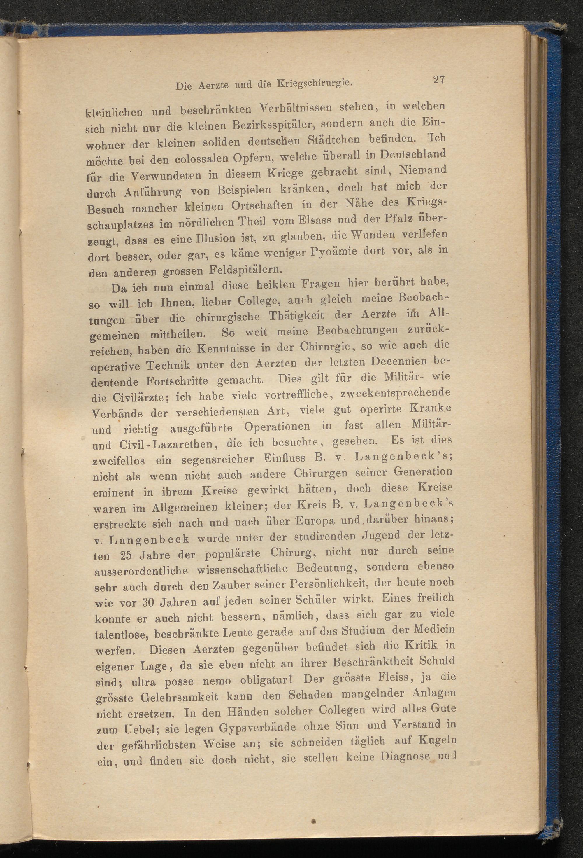 Chirurgische Briefe aus den Kriegs-Lazarethen in Weissenburg und Mannheim 1870 : ein Beitrag zu den wichtigsten Abschnitten der Kriegschirurgie, mit besonderer Rücksicht auf Statistik / von Theodor Billroth