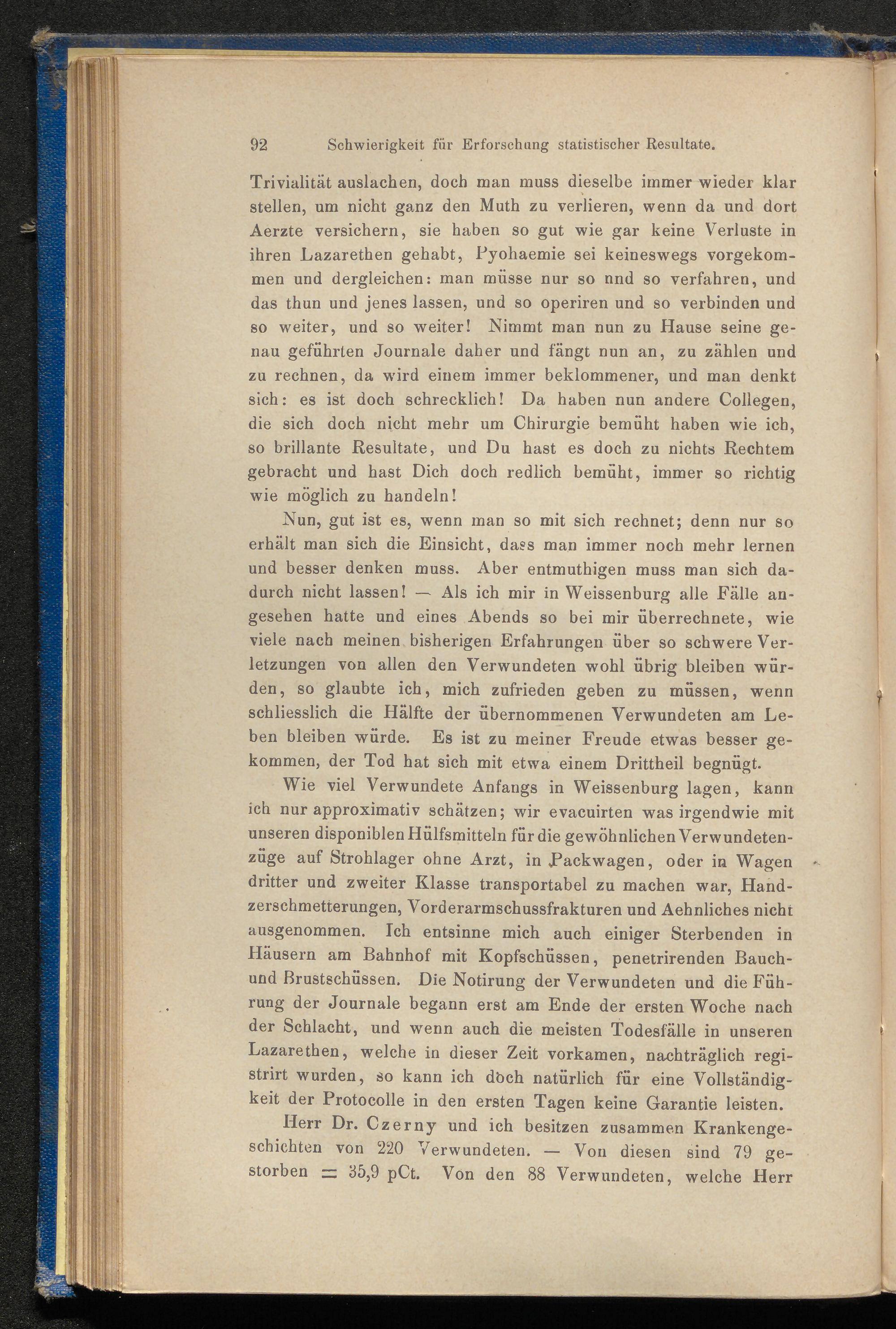 Chirurgische Briefe aus den Kriegs-Lazarethen in Weissenburg und Mannheim 1870 : ein Beitrag zu den wichtigsten Abschnitten der Kriegschirurgie, mit besonderer Rücksicht auf Statistik / von Theodor Billroth