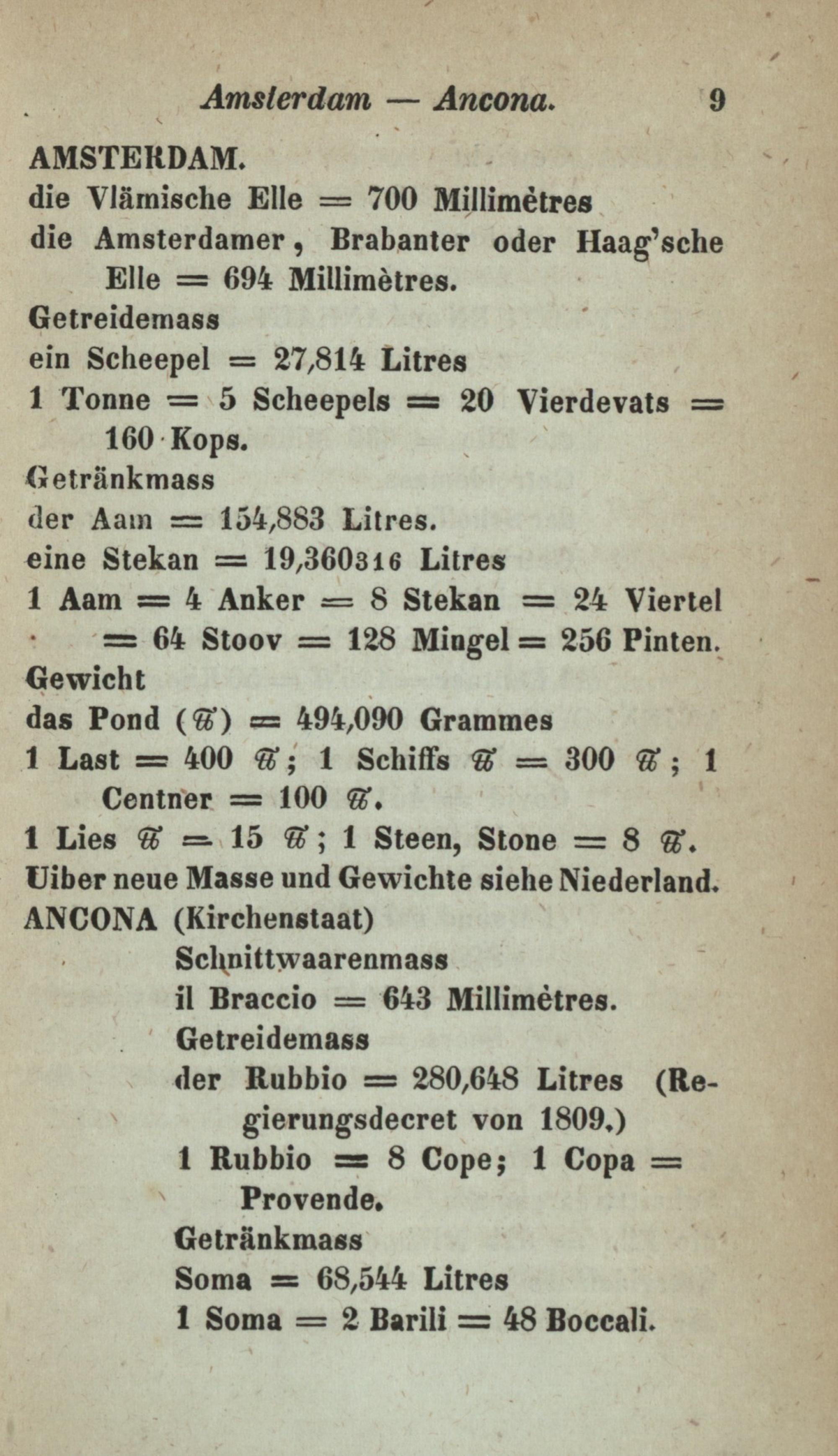 Bequemstes Taschenbuch der Mass- und Gewichtskunde, in welchem die Gewichte, Schnittwaaren-, Getreide- und Getränkmasse der bedeutendsten Handelsplätze und Länder mit dem Metrischen verglichen sind / von Joseph Jäckel