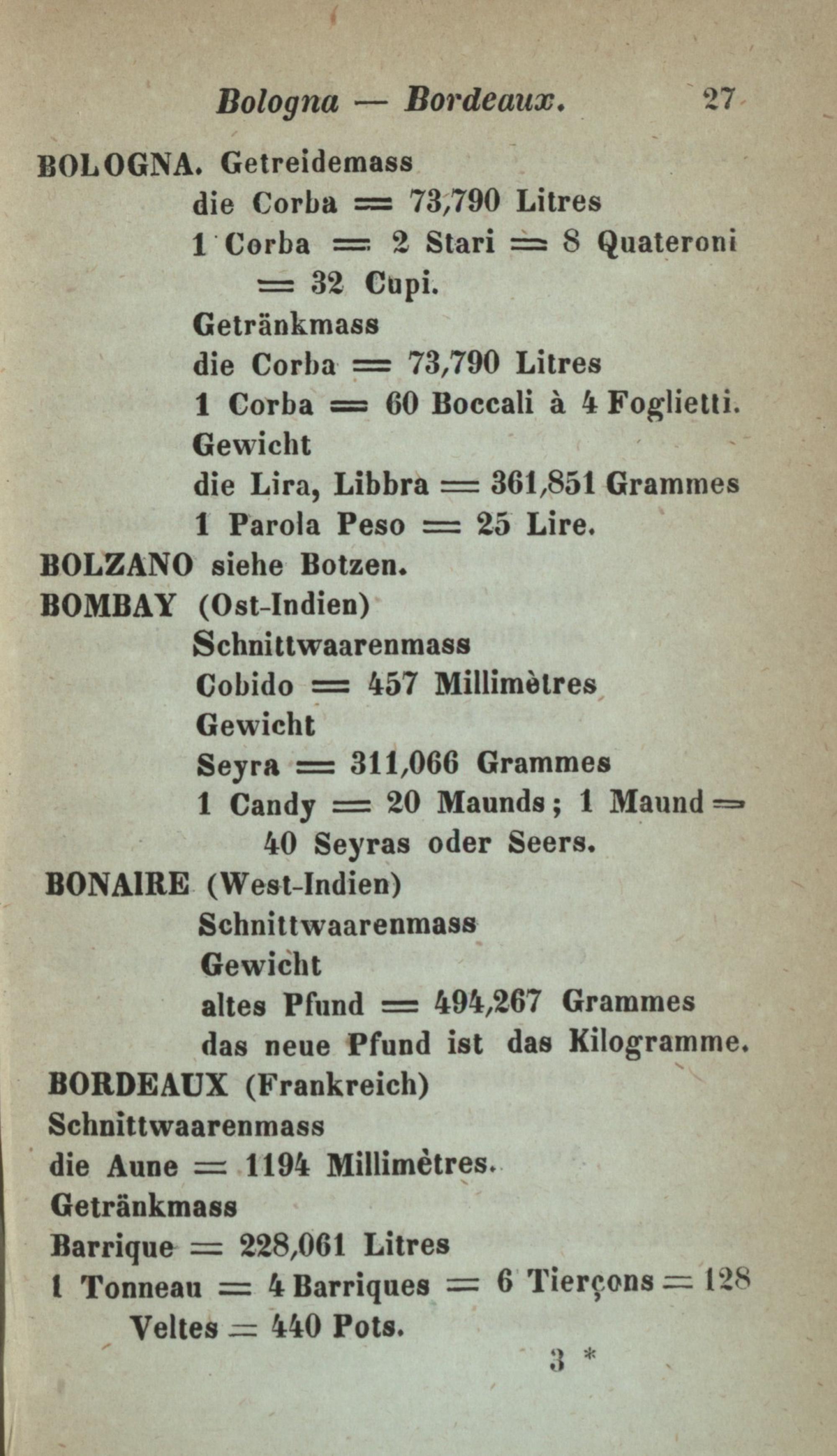 Bequemstes Taschenbuch der Mass- und Gewichtskunde, in welchem die Gewichte, Schnittwaaren-, Getreide- und Getränkmasse der bedeutendsten Handelsplätze und Länder mit dem Metrischen verglichen sind / von Joseph Jäckel