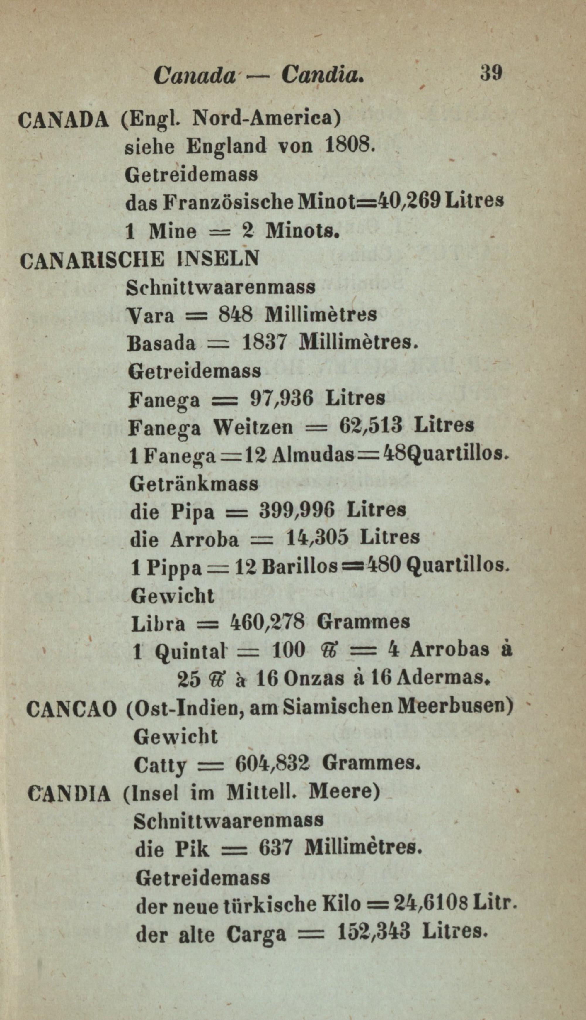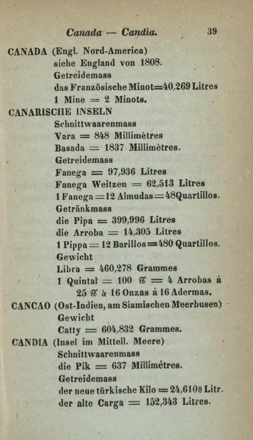Bequemstes Taschenbuch der Mass- und Gewichtskunde, in welchem die Gewichte, Schnittwaaren-, Getreide- und Getränkmasse der bedeutendsten Handelsplätze und Länder mit dem Metrischen verglichen sind / von Joseph Jäckel