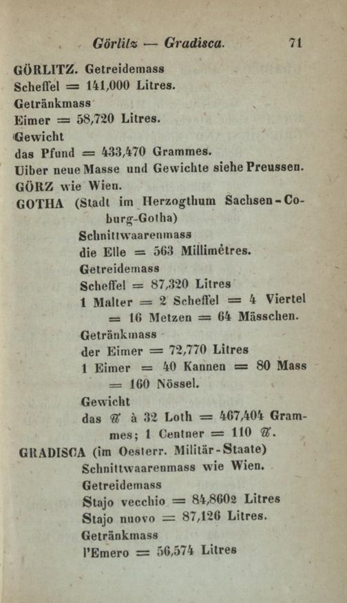 Bequemstes Taschenbuch der Mass- und Gewichtskunde, in welchem die Gewichte, Schnittwaaren-, Getreide- und Getränkmasse der bedeutendsten Handelsplätze und Länder mit dem Metrischen verglichen sind / von Joseph Jäckel