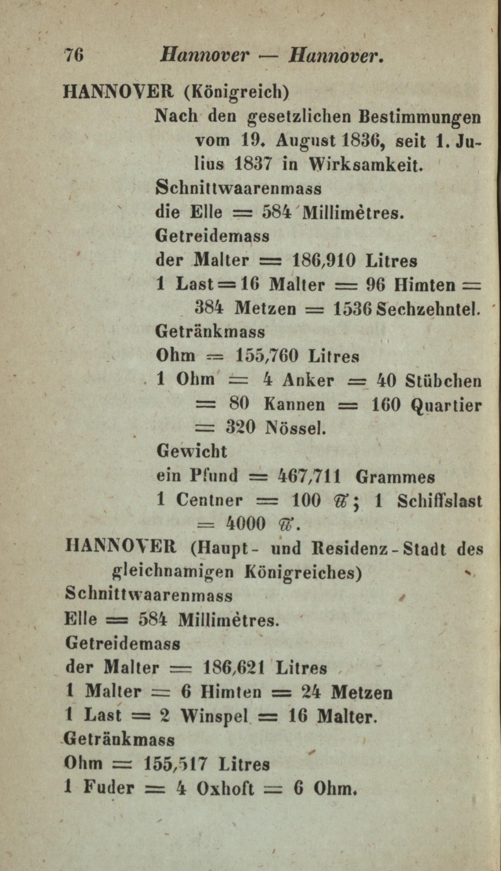 Bequemstes Taschenbuch der Mass- und Gewichtskunde, in welchem die Gewichte, Schnittwaaren-, Getreide- und Getränkmasse der bedeutendsten Handelsplätze und Länder mit dem Metrischen verglichen sind / von Joseph Jäckel