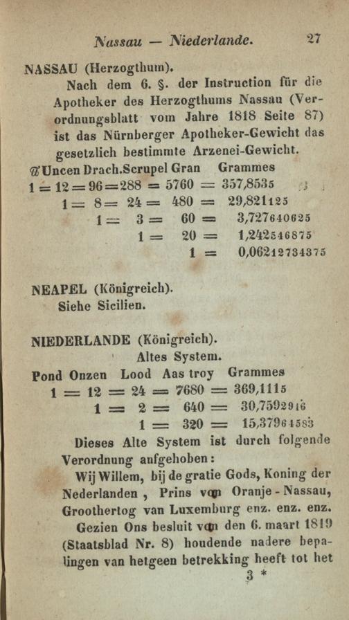 Vergleichungen der in verschiedenen Ländern gebräuchlichen Arzenei-Gewichte mit dem Metrischen für Aerzte, Apotheker und Reisende / von Joseph Jäckel