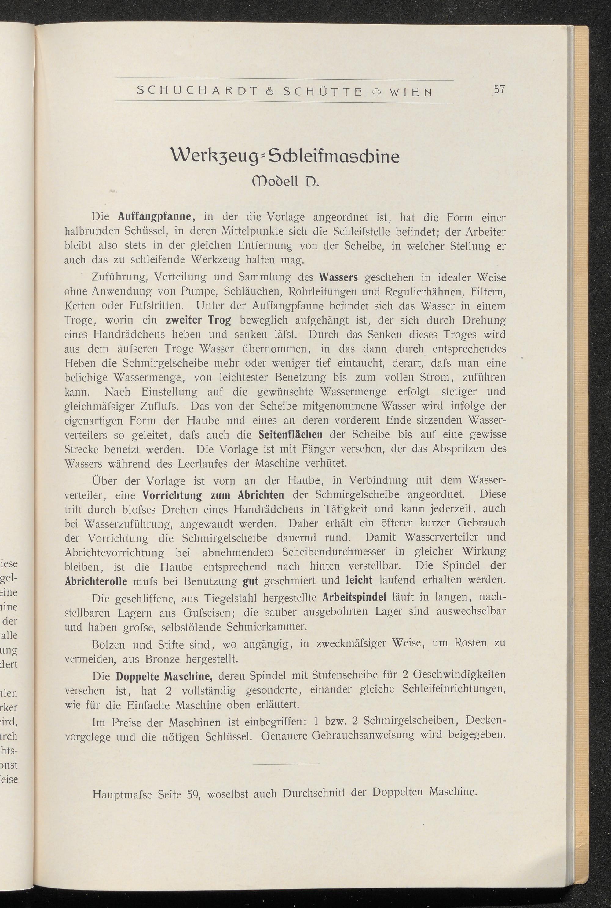 Katalog über Schleif- und Poliermaschinen aller Art / Schuchardt & Schütte, Wien VII