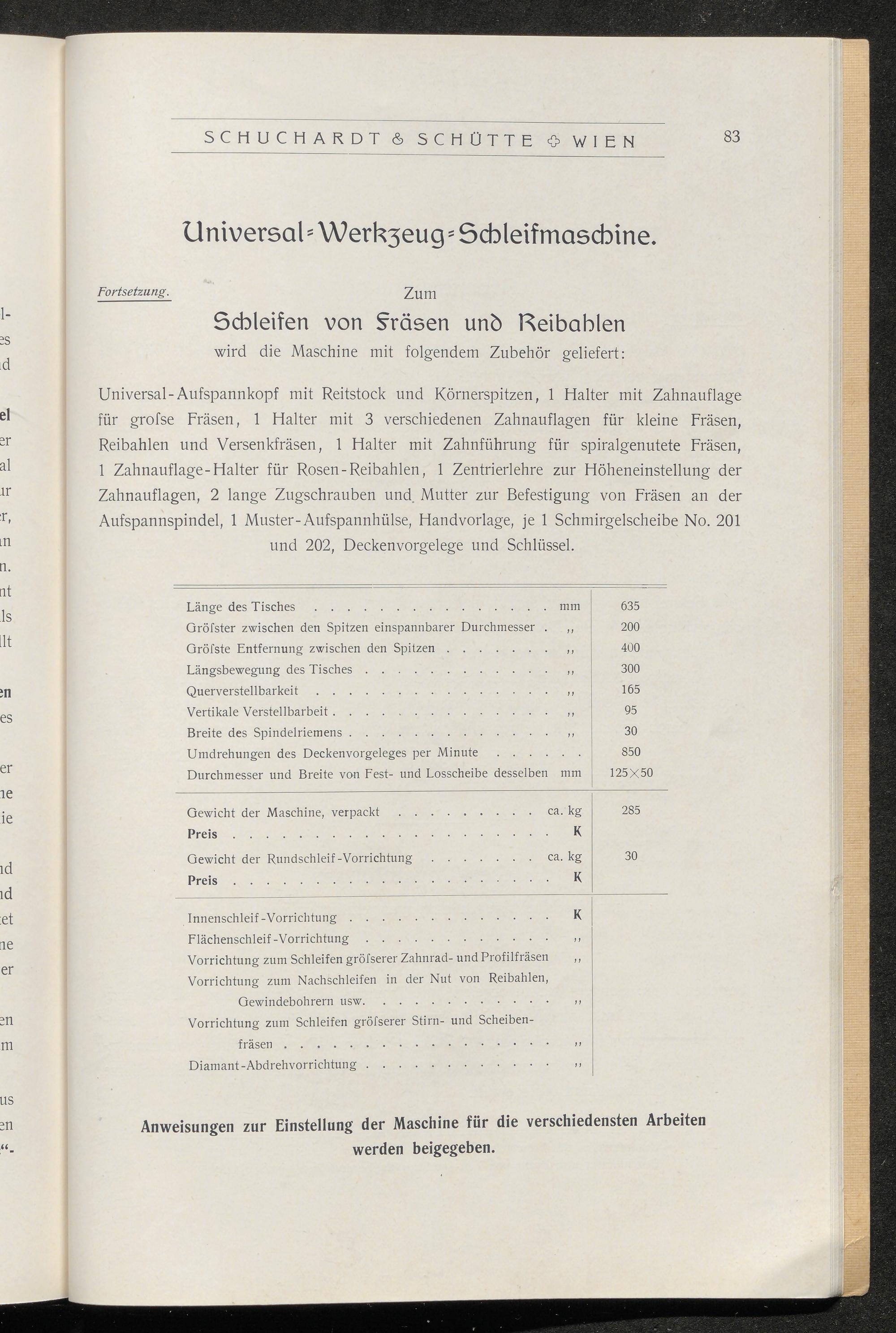 Katalog über Schleif- und Poliermaschinen aller Art / Schuchardt & Schütte, Wien VII