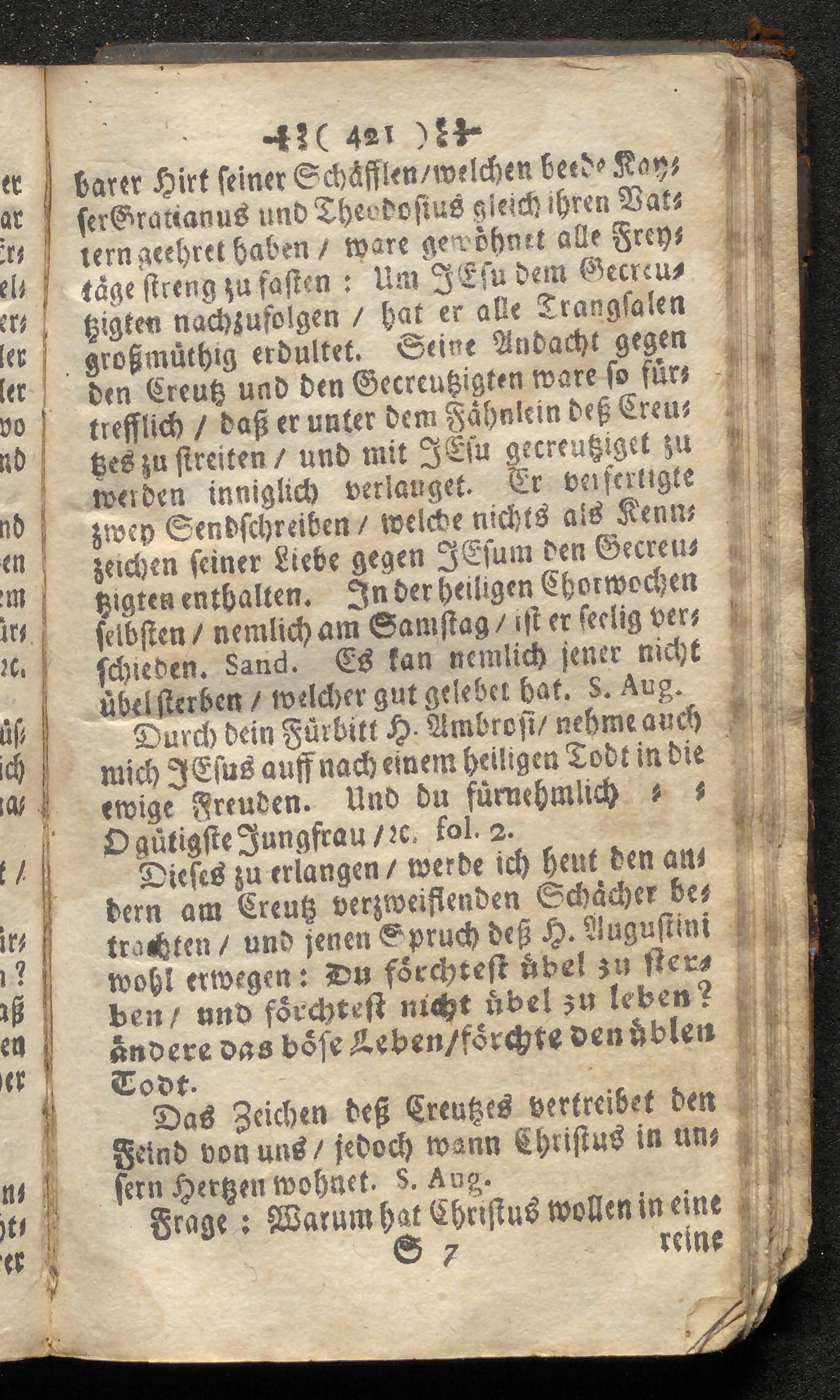 Höchst nutzbare Andacht Auff alle Tag deß Jahrs Zu Jesum Christum den Gecreutzigten, Göttlichen Erlöser deß menschlichen Geschlechts, Urheber deß Glaubens, Anfang und End-Ursach unsers Heyls : Dardurch zu erwerben Die Gnad, from-Christlich zu leben, und heilig zu sterben. Zum Gebrauch und Trost aller andächtigen Seelen zusam getragen / [Einem Löbl. Hoch-weisen Stadt-Rath Der Kays. Residentz-Stadt Wienn, Denen Gnädigen Herren, Herrn Frantz Joseph Hauser, Burgermeistern. Herrn Josepho Hartman[n] J.U.D. Stadt-Richtern ... Ein vielfältig höchst-verbundenes Prob-Hauß der Gesellschafft Jesu bey St. Anna in Wienn ; Meinem Gecreutzigten Herrn und Heyland Jesu Christo ... F. M.]