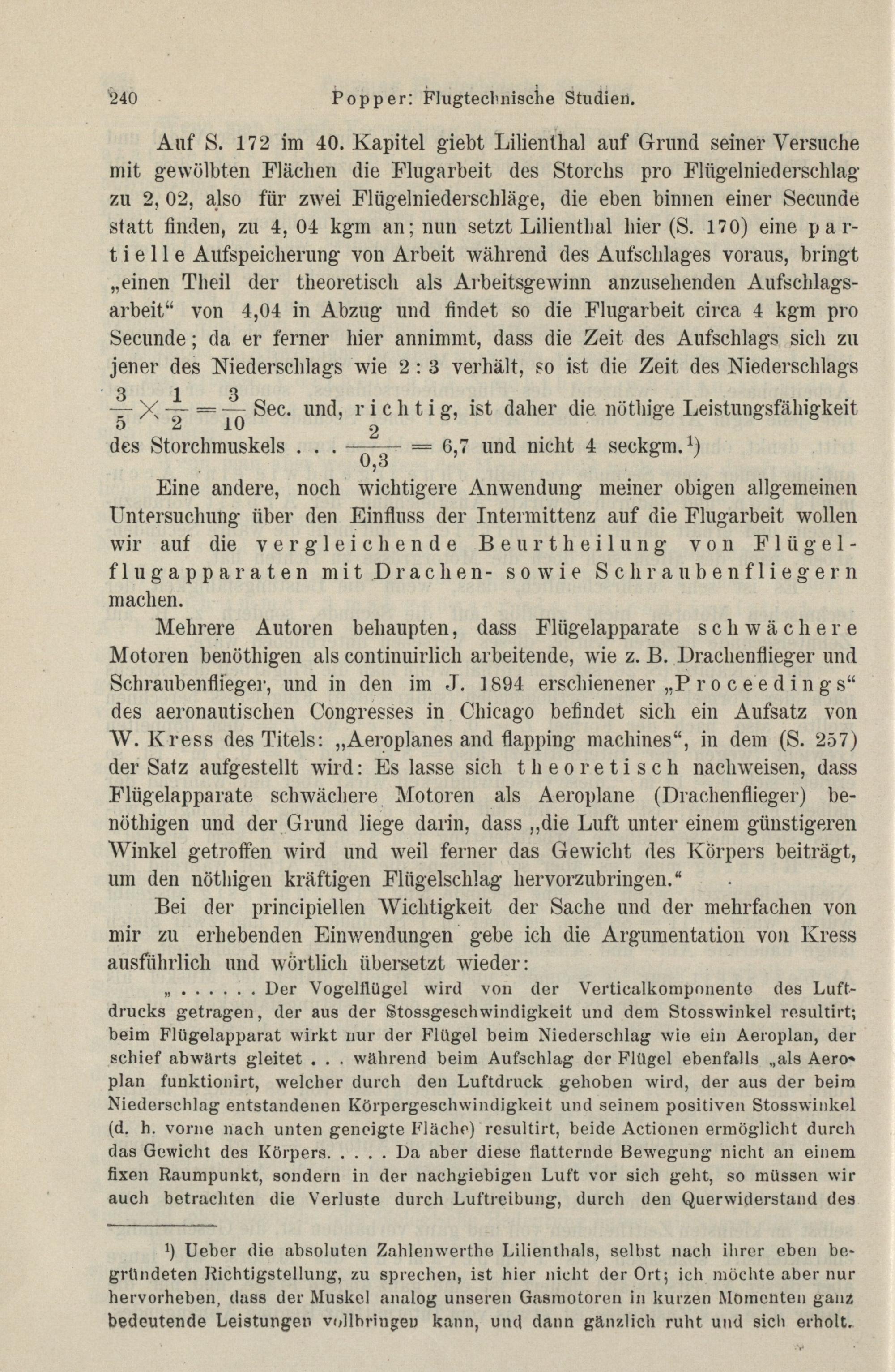 Flugtechnische Studien : I. Ueber einige flugtechnische Grundfragen; anknüpfend an eine Besprechung des Buches: "Die Luftwiderstandsgesetze, der Fall durch die Luft und der Vogelflug" von Herrn Fr. R. v. Loessl, vorgetragen am 4. Februar und 3. März 1896 im Wiener flugtechnischen Verein / von Josef Popper