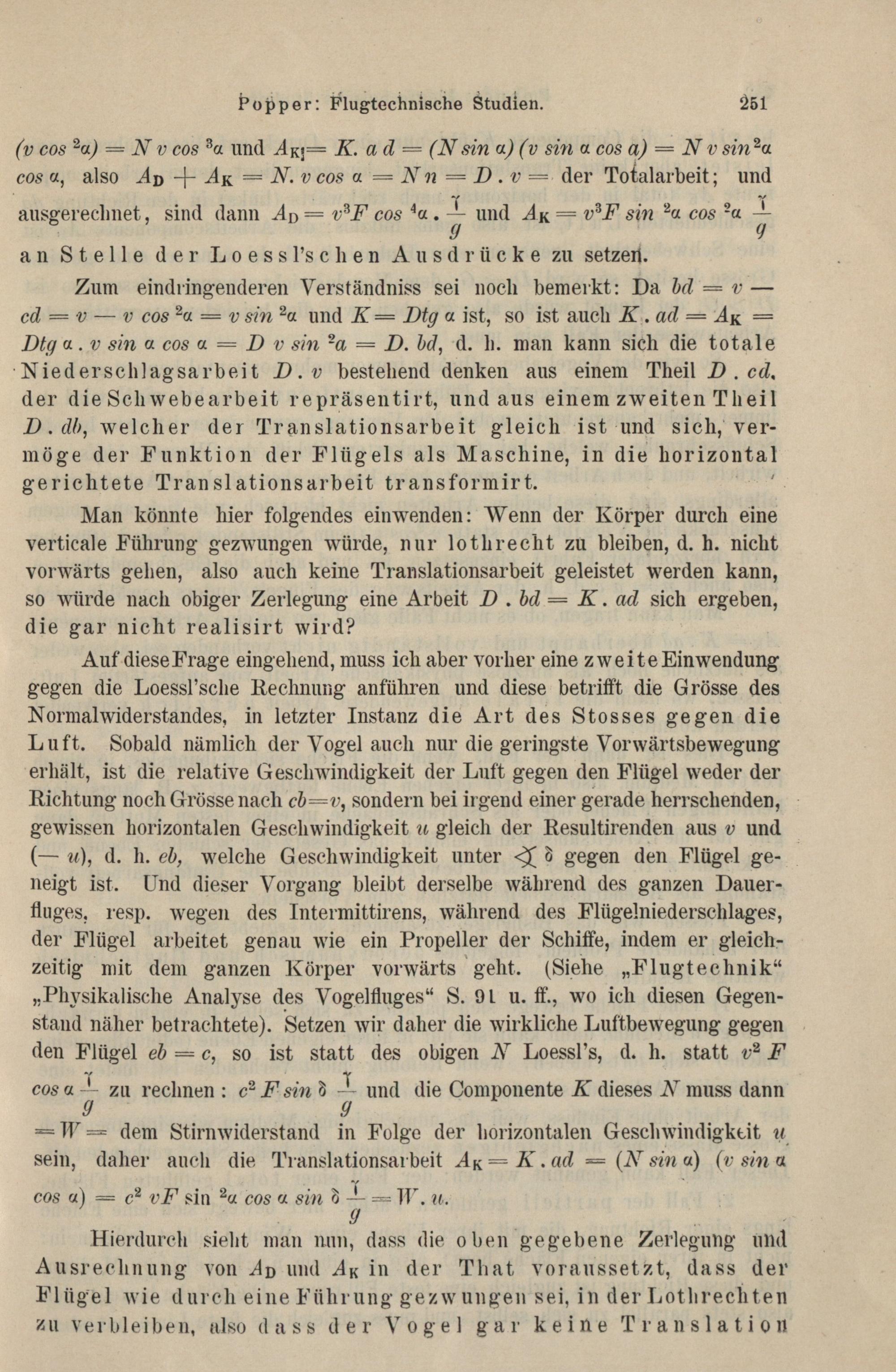 Flugtechnische Studien : I. Ueber einige flugtechnische Grundfragen; anknüpfend an eine Besprechung des Buches: "Die Luftwiderstandsgesetze, der Fall durch die Luft und der Vogelflug" von Herrn Fr. R. v. Loessl, vorgetragen am 4. Februar und 3. März 1896 im Wiener flugtechnischen Verein / von Josef Popper