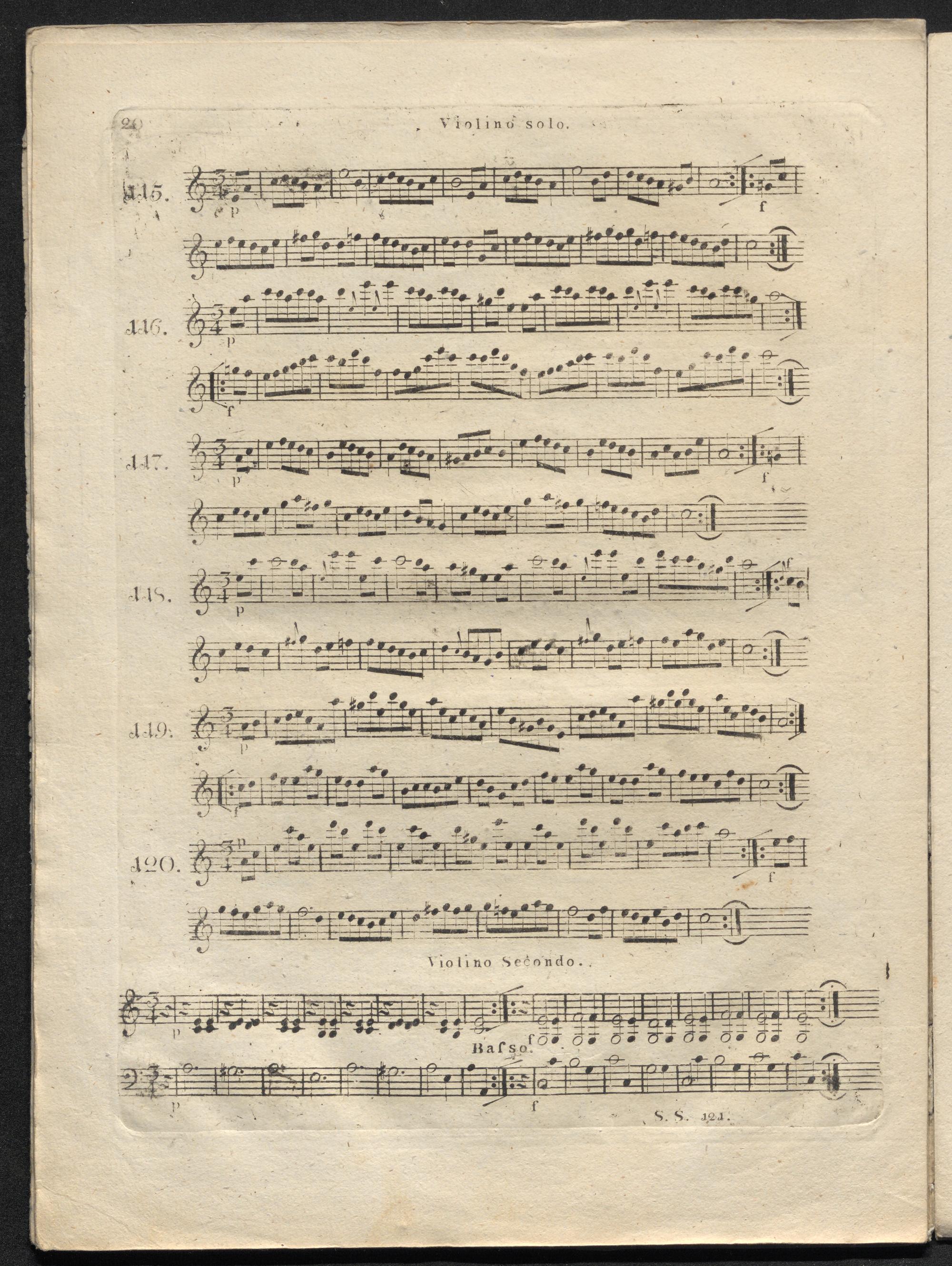 Zwölf Duzend Solowalzer mit einer Coda : in sechs Heften für Violine Primo, wobei immer sechs und sechs auf einerlei Art nach Belieben begleitet werden können mit Violine Secondo und Basso ; 47. Satz / Componirt von Musikdirector F. Pechatschek