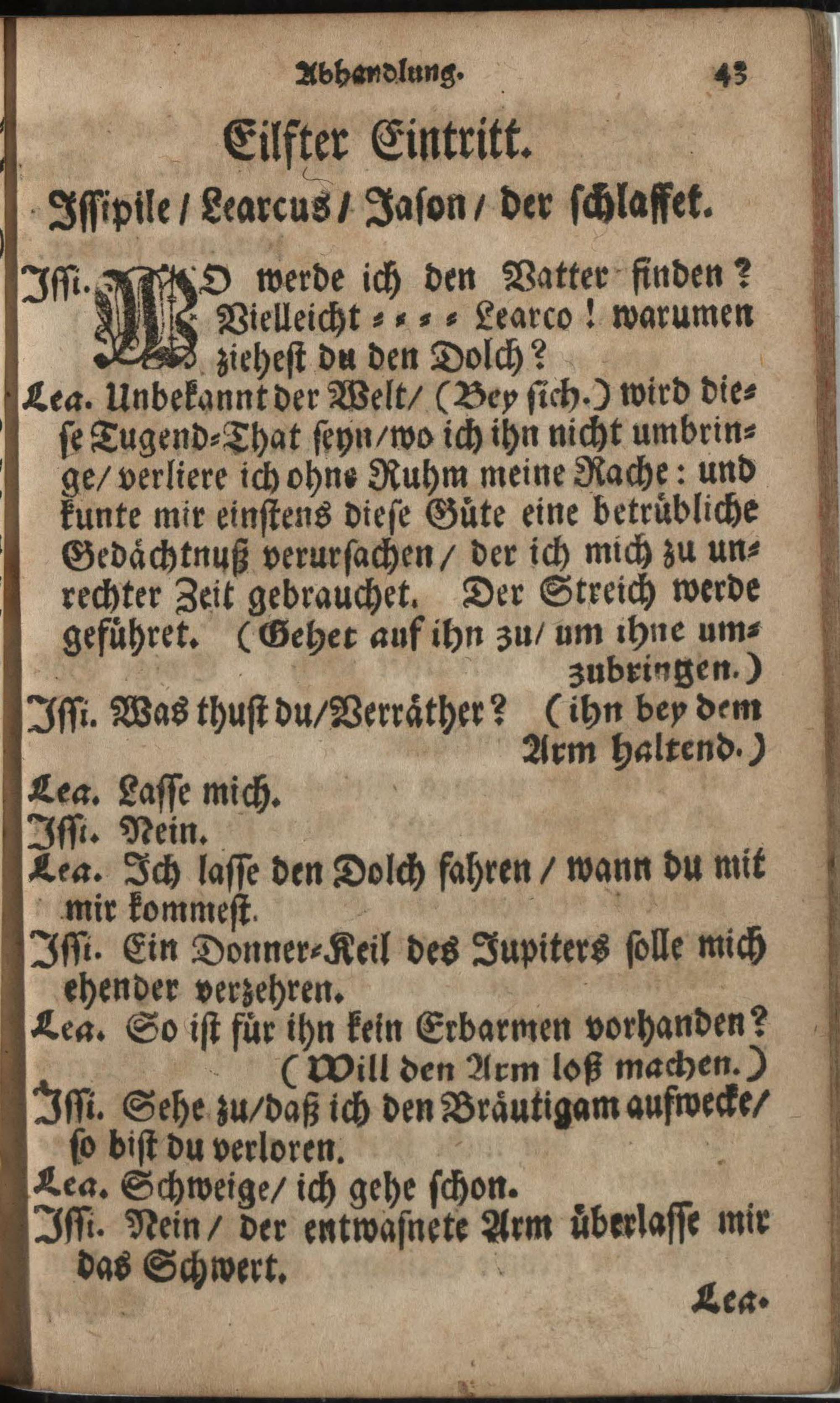 Issipile : Musicalisches Schau-Spiel, welches Anno 1733 zur gewöhnlich-Herbstlichen Unterhaltung durch Ihro eigene Musicos Wälsch-gesungener haben vorstellen lassen Ihro hochgraefliche Excellenz Herr Johann Adam Des Heil. Röm. Reichs Graf von und zu Questenberg / die Poesie ist vom ... Pietro Metastasio. Die Music von Francisco Conti