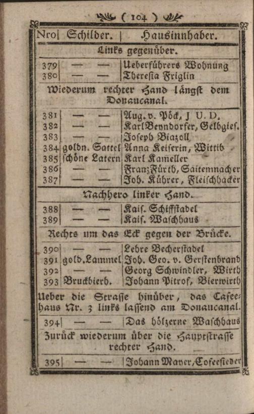 Verzeichniß der um die k. k. Haupt- und Residenzstadt Wien befindlichen Vorstädten, Gründen, Gassen, numerirten Häuser, Innhaber und ihrer Schilder