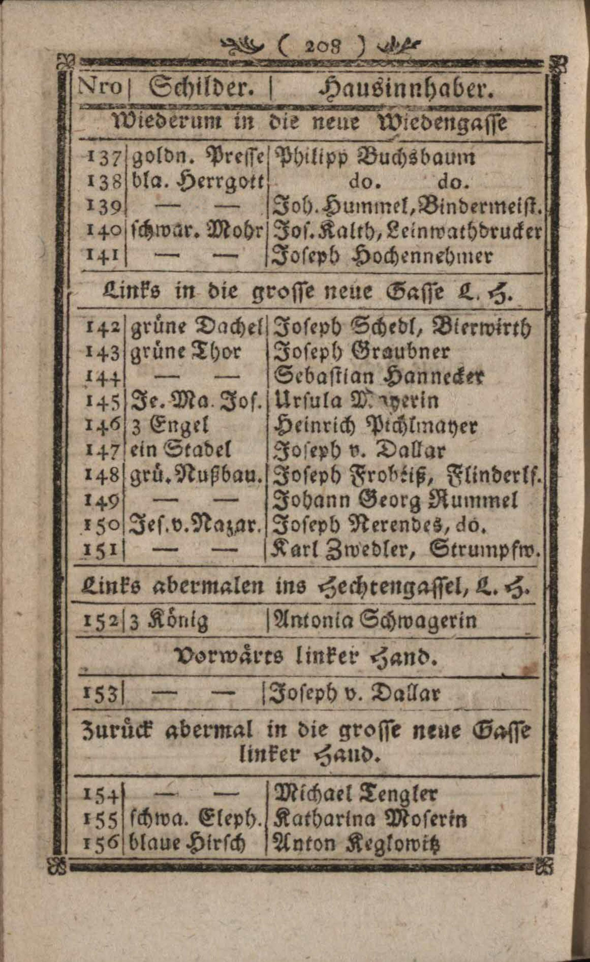 Verzeichniß der um die k. k. Haupt- und Residenzstadt Wien befindlichen Vorstädten, Gründen, Gassen, numerirten Häuser, Innhaber und ihrer Schilder