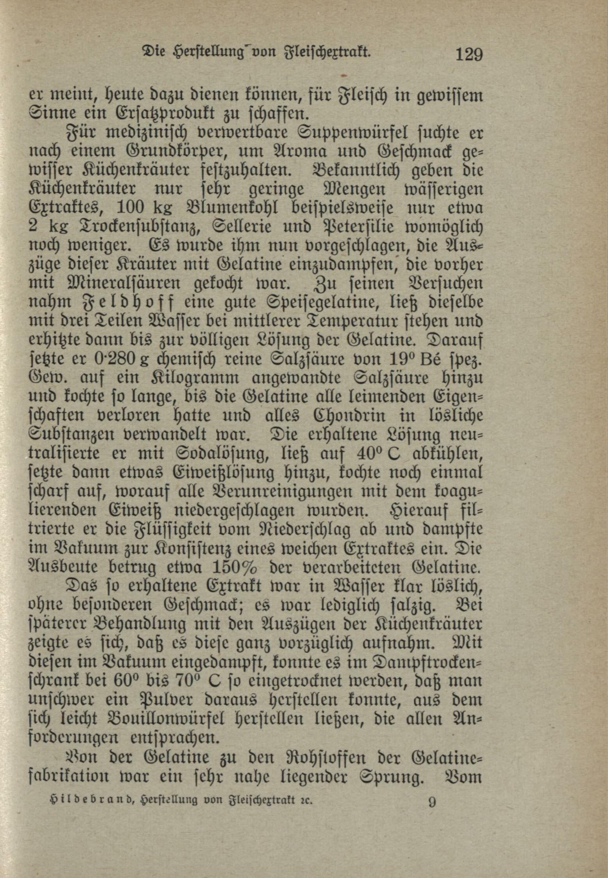 Herstellung von Fleischextrakt, Bouillonwürfeln, Suppenwürfeln und Suppenwürze : praktisches Handbuch für Fabrikanten der Nahrungsmittelindustrie / von Otto Hildebrand